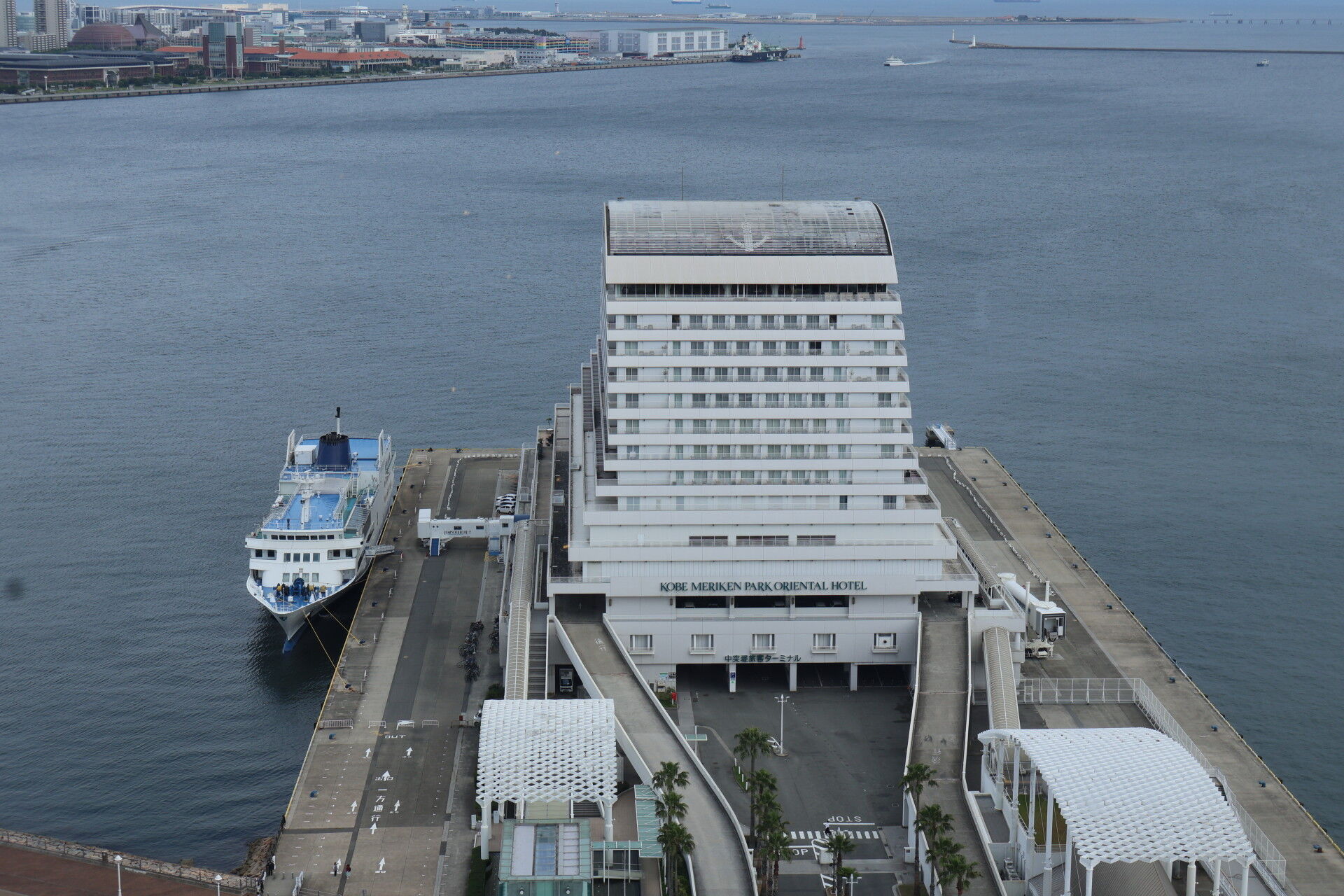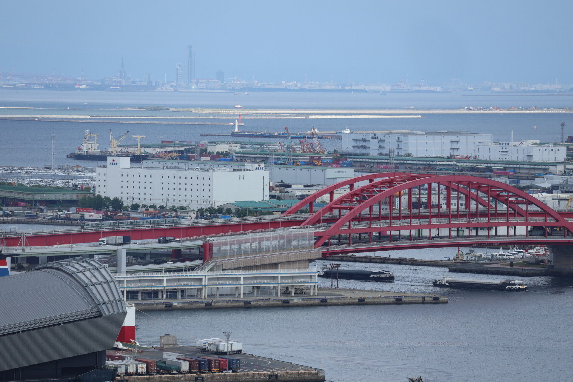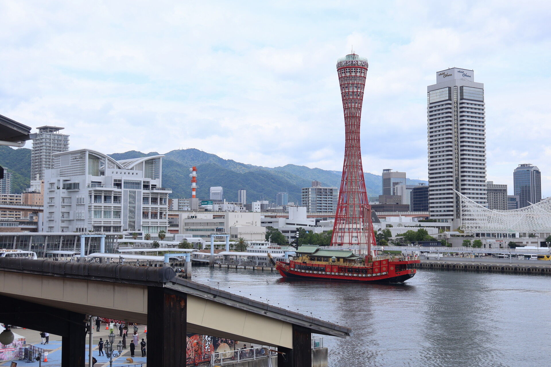 奥にポートアイランドへ向かうポートライナーが見えます。