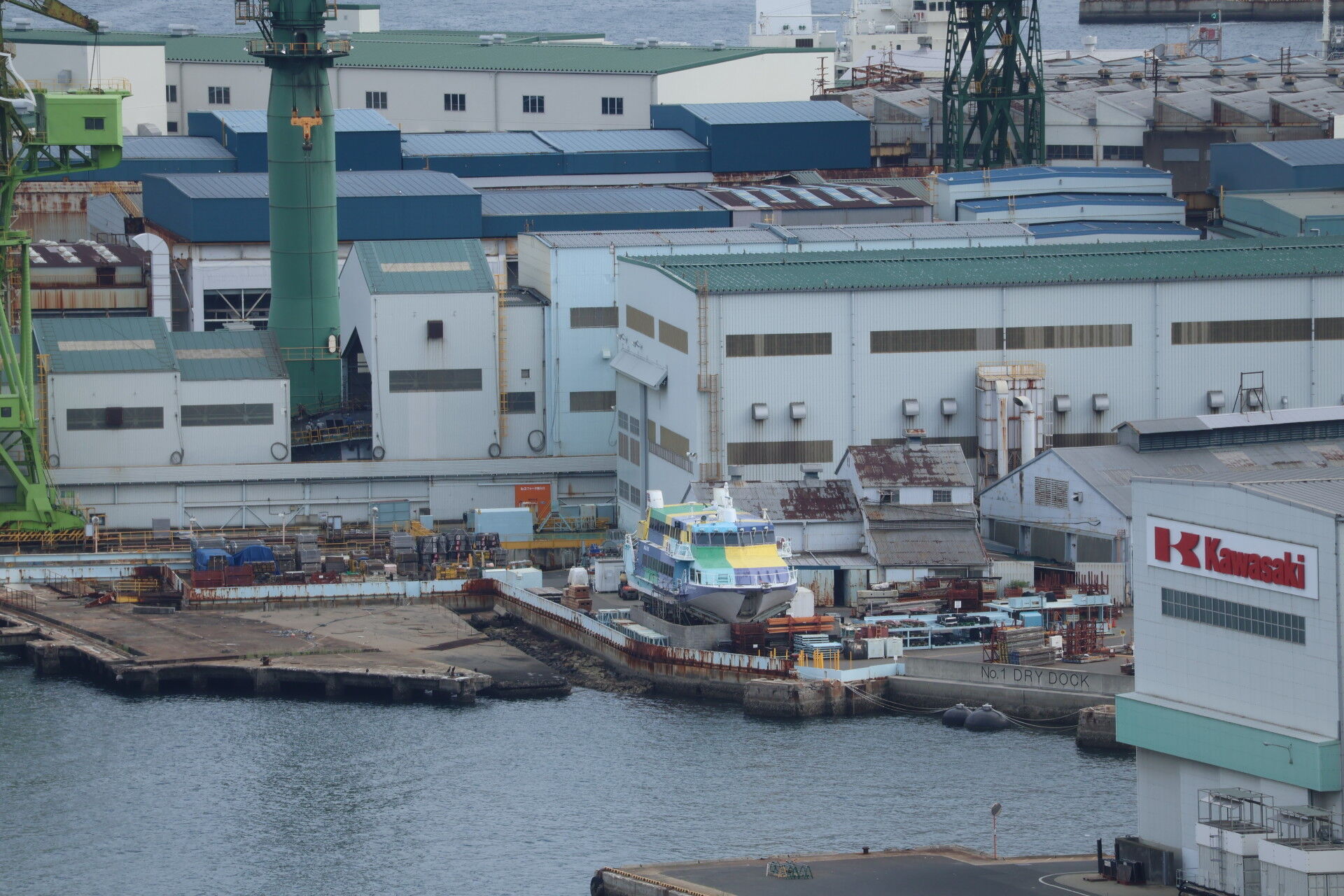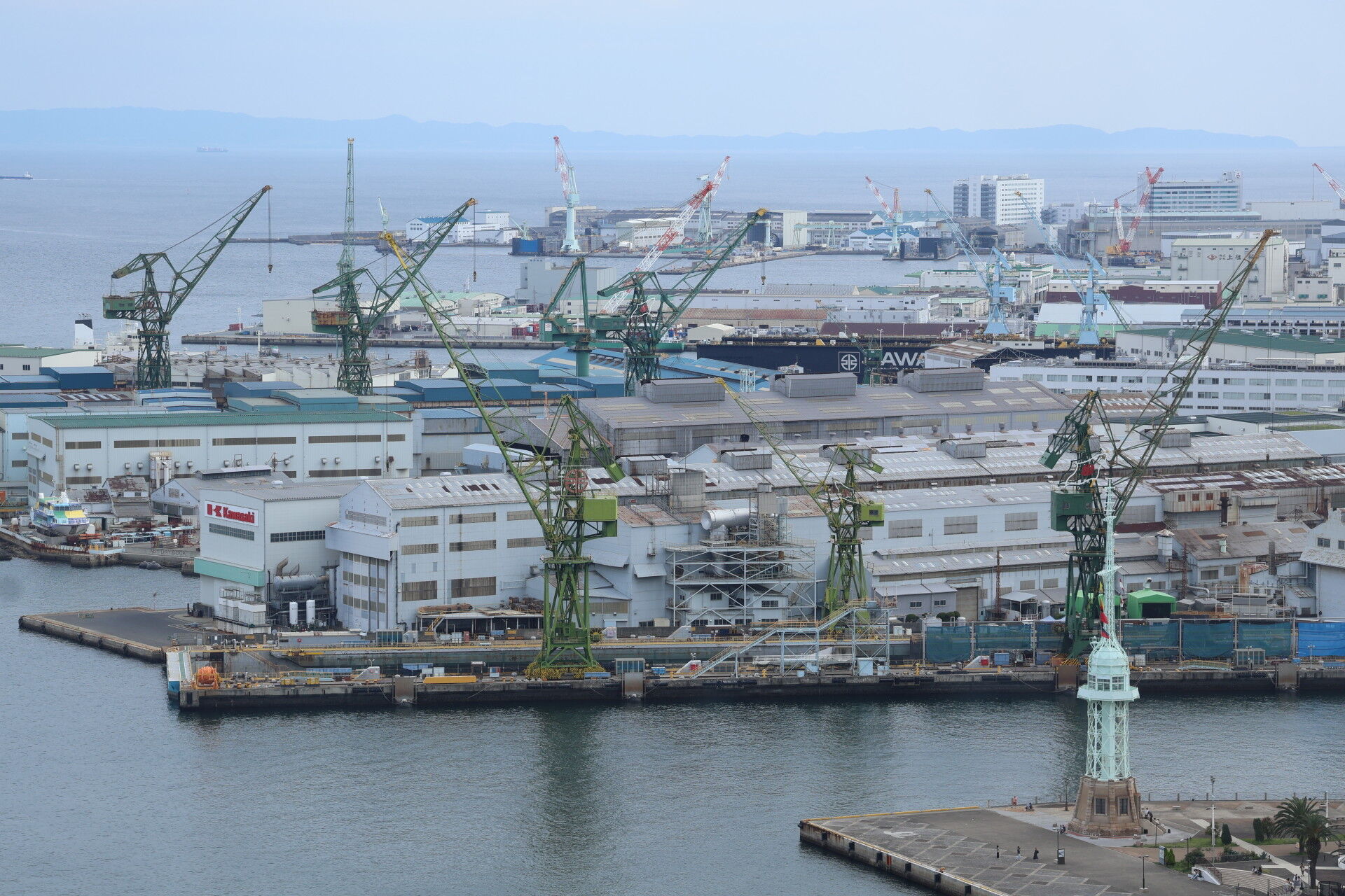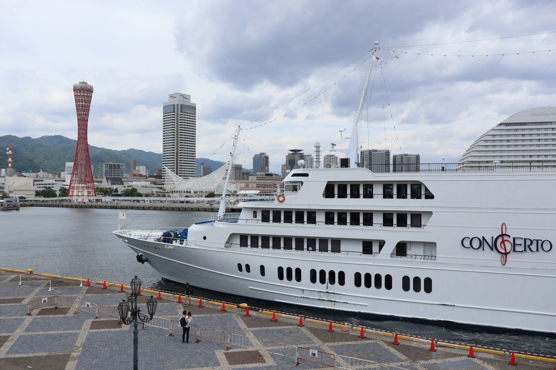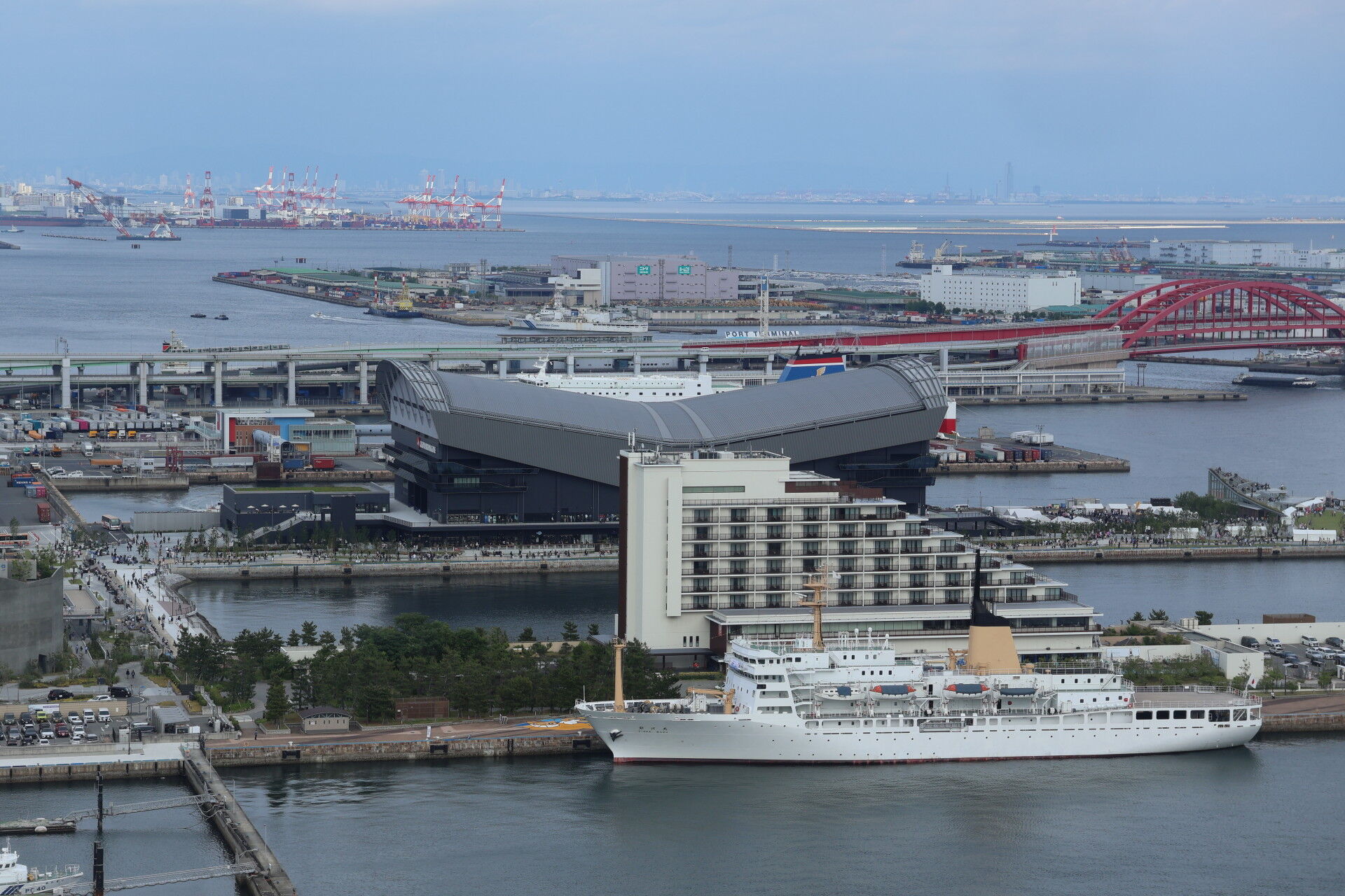 奥にポートアイランドへ向かうポートライナーが見えます。