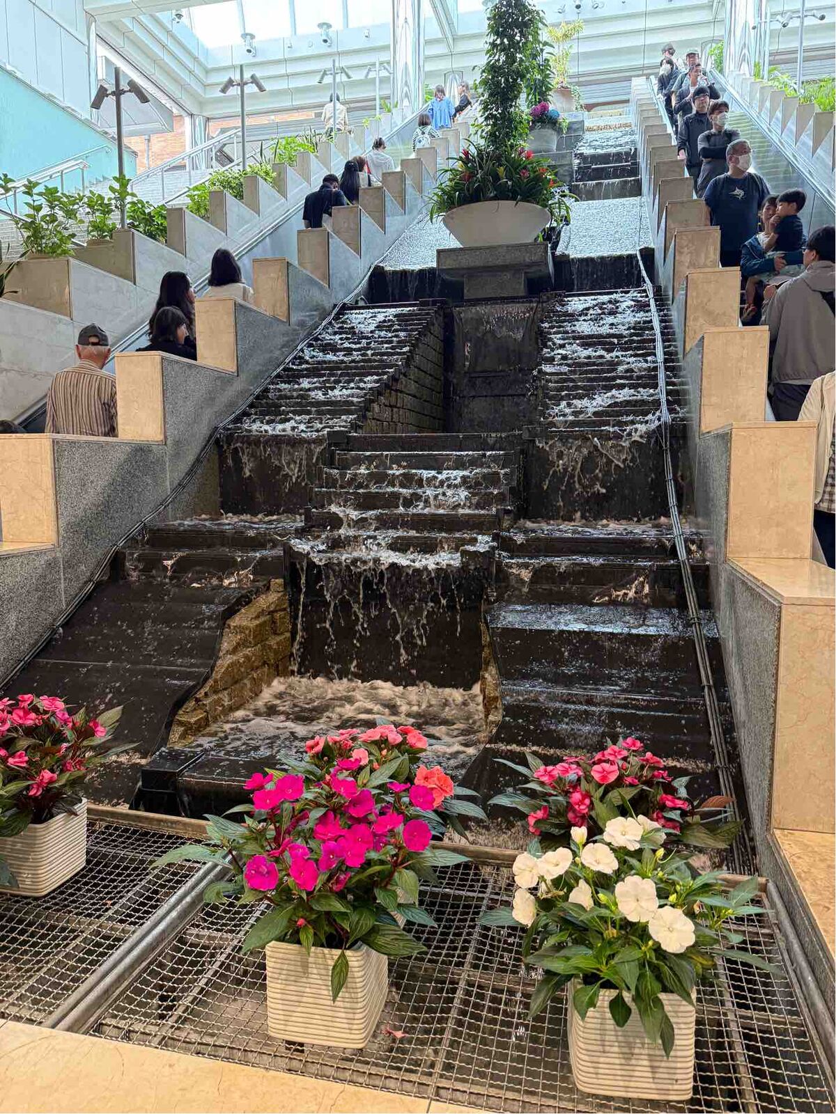ストリートピアノがあったり、90年代のおしゃれ建築ですね!土木という方がいいのか。