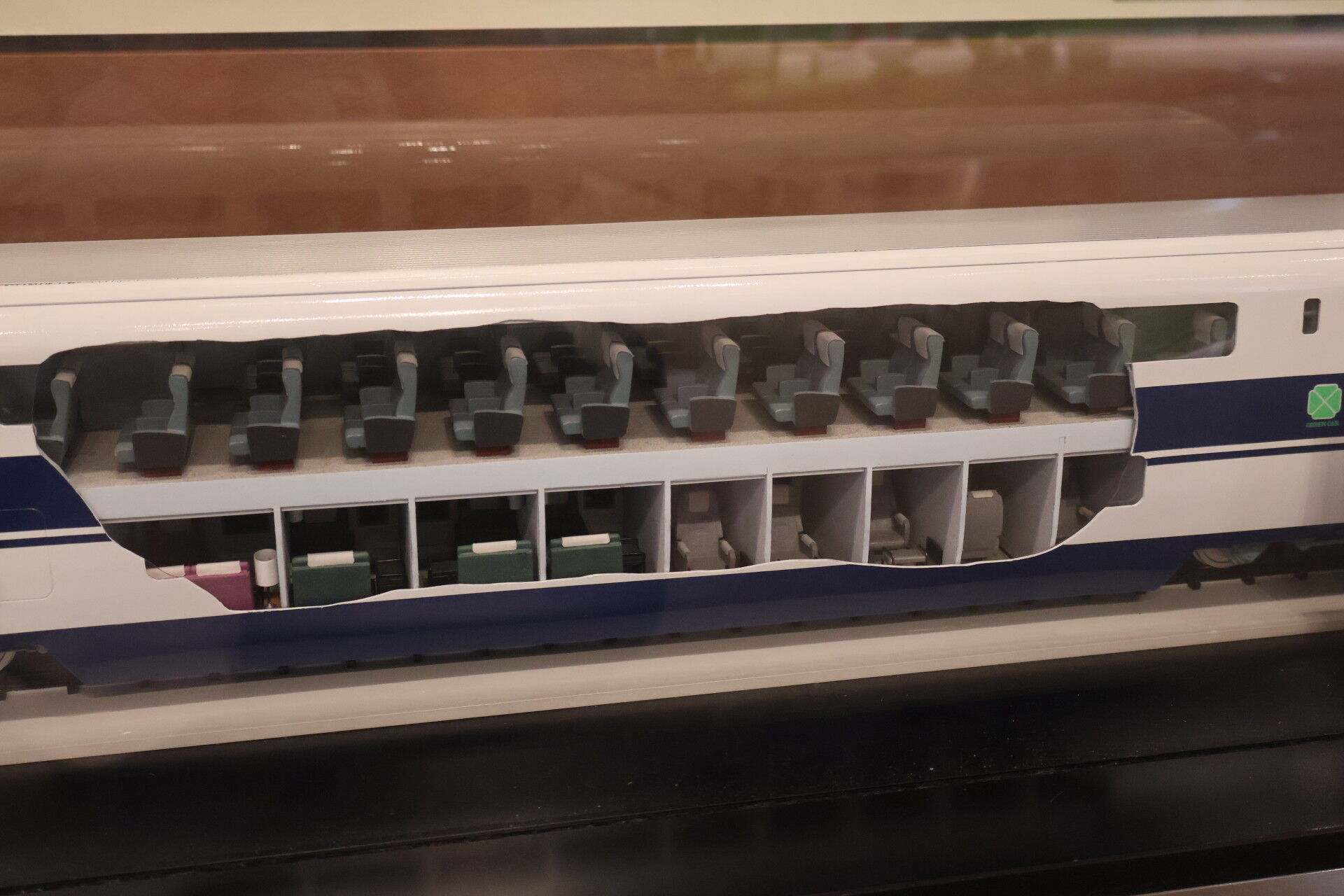 カワサキワールドには、ウエストひかりカラーの0系がカットされて展示されています。