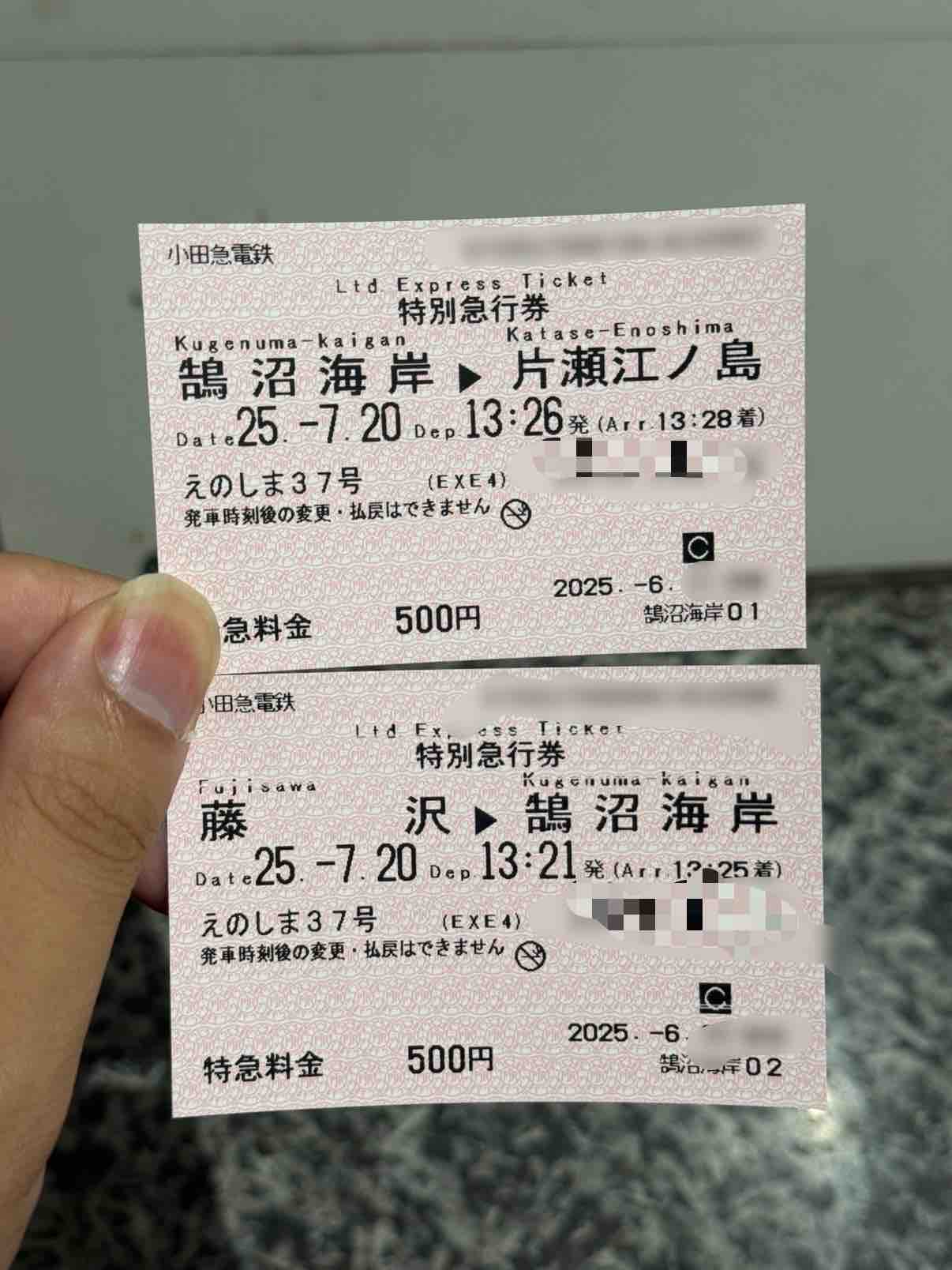 今回のために、わざわざ鵠沼海岸で分割購入した特急券。
