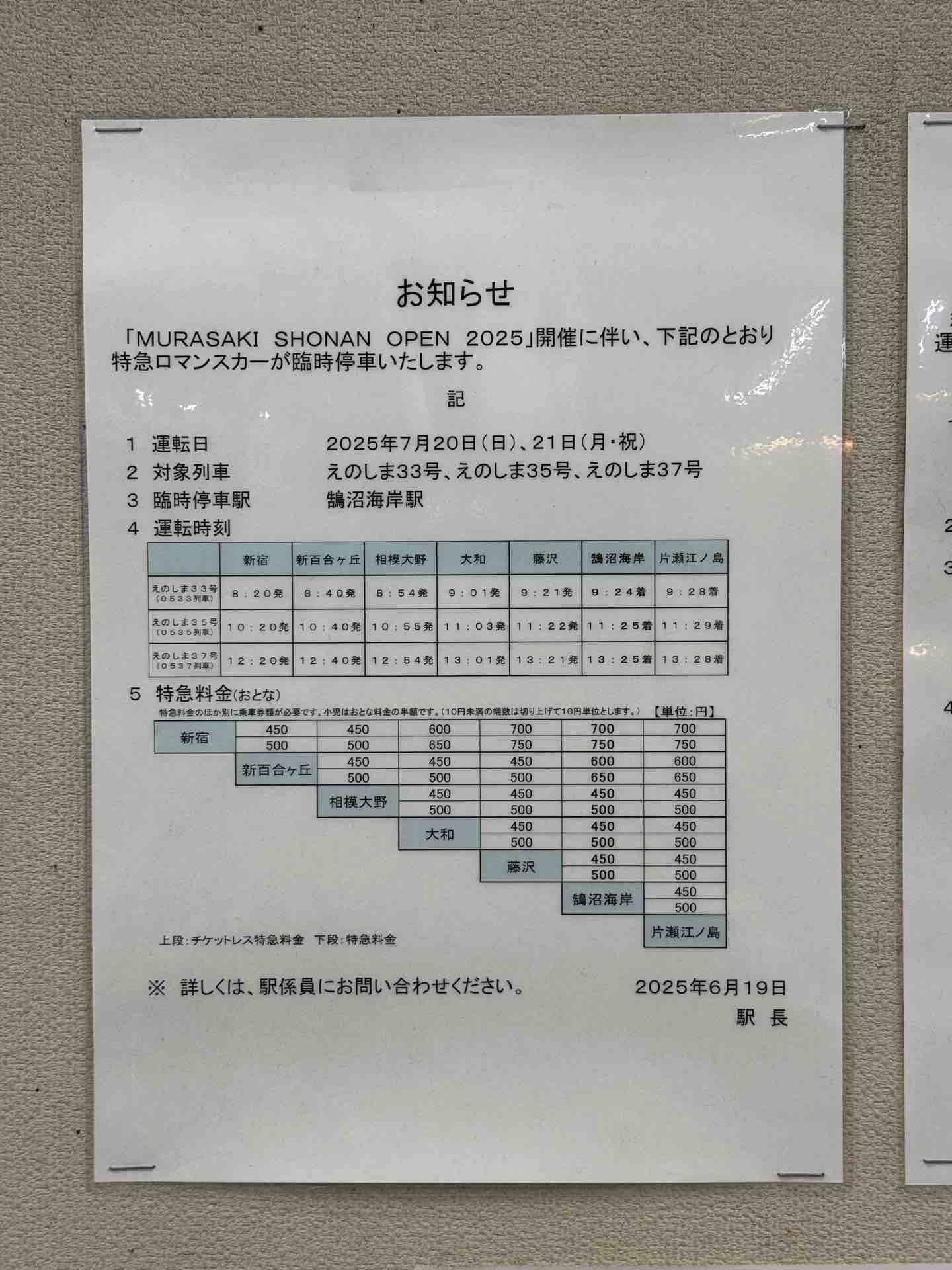 ロマンスカーが鵠沼海岸駅に臨時停車することとなりました。