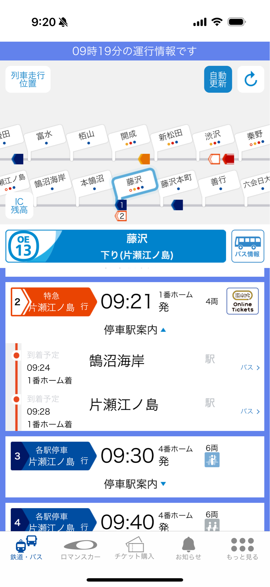 停車駅は鵠沼海岸という文字が出ています。