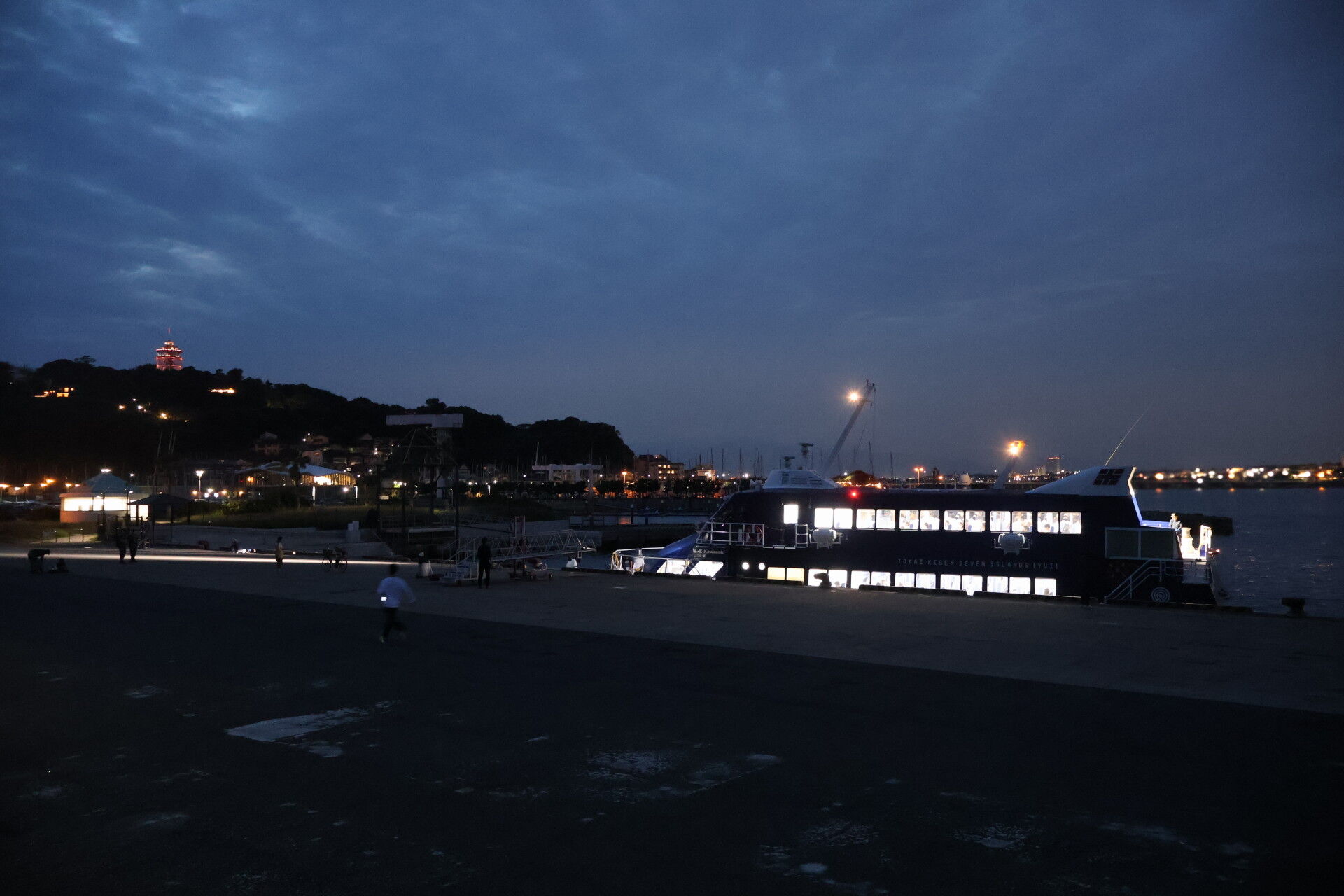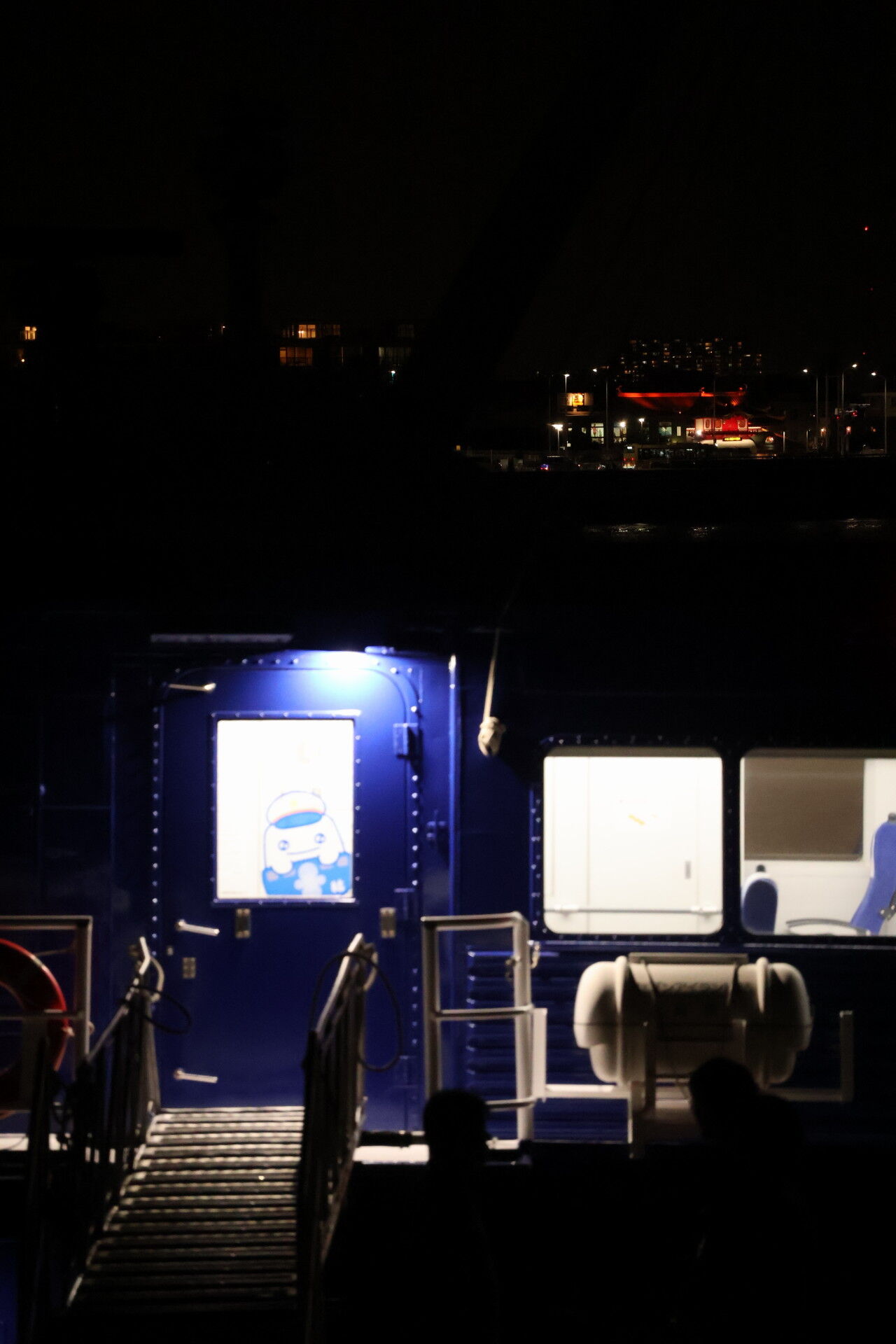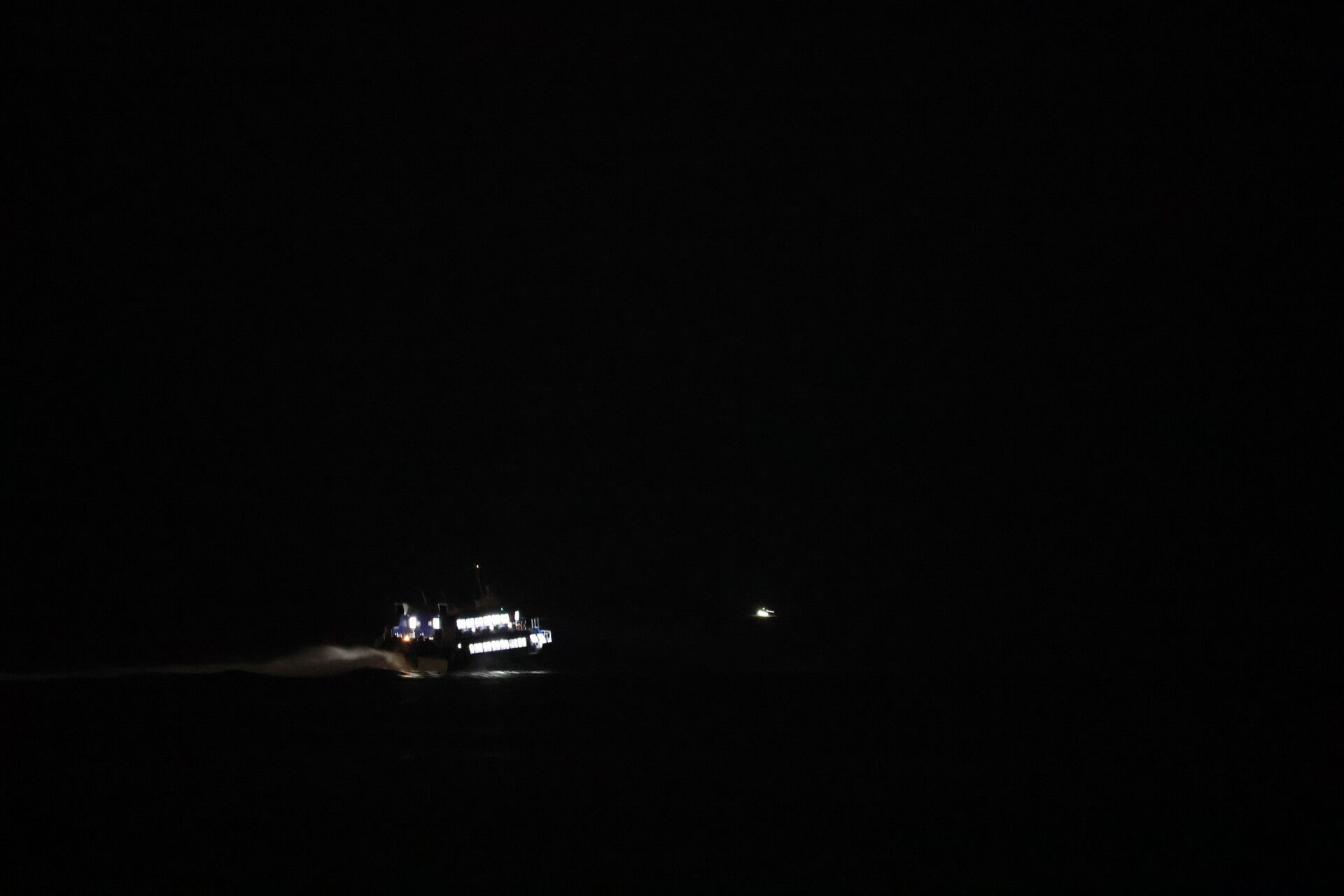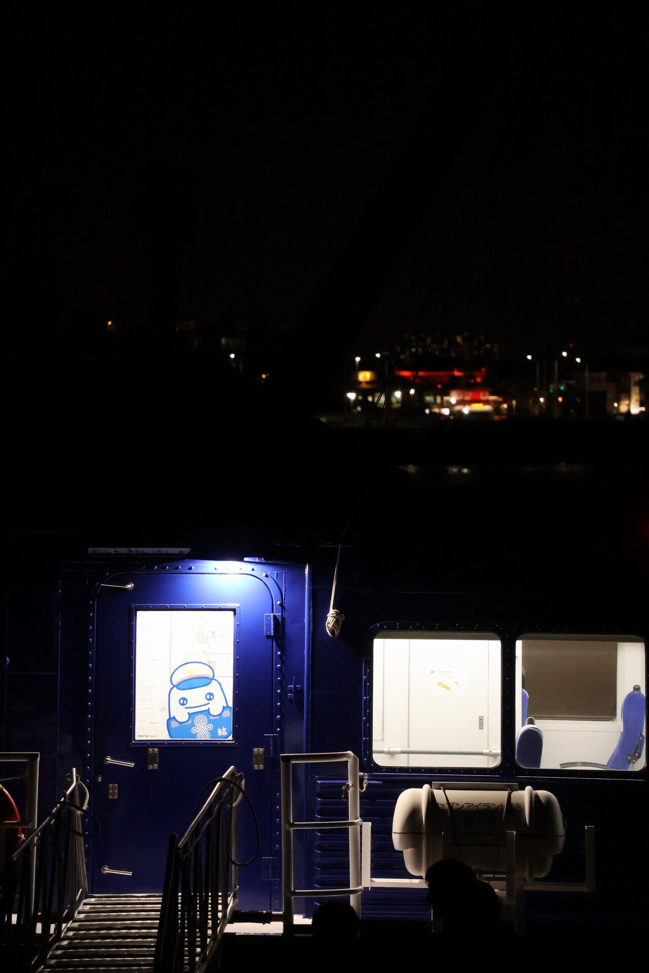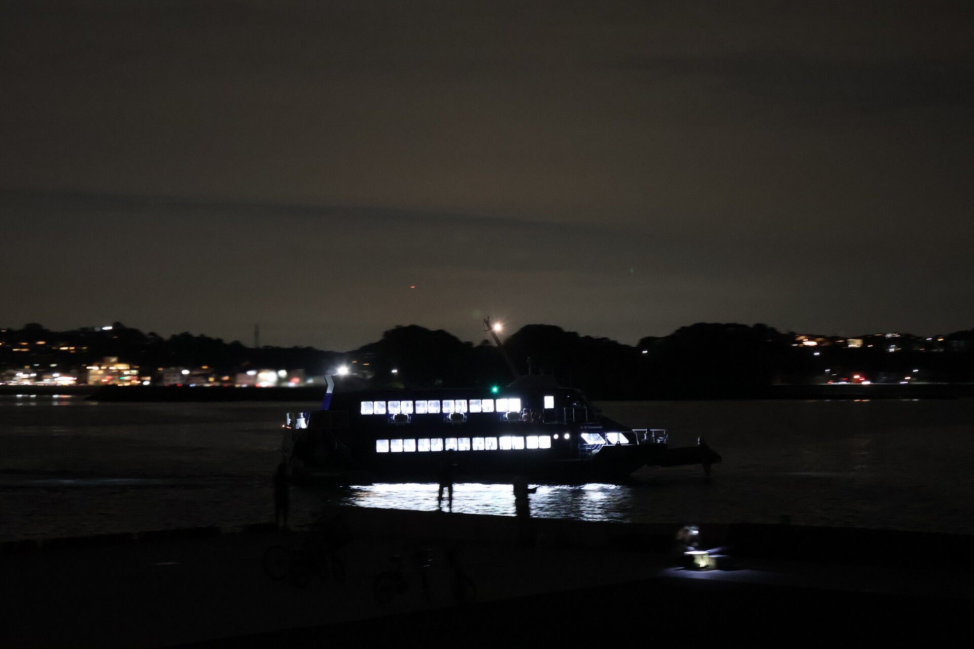 明るい船内照明が煌々と、遠くからでもよく見えました。