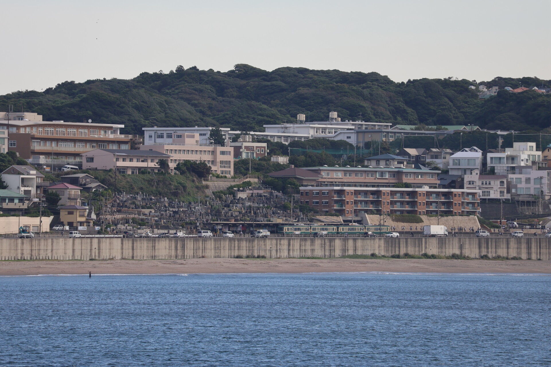 奥に江ノ電が写っています。