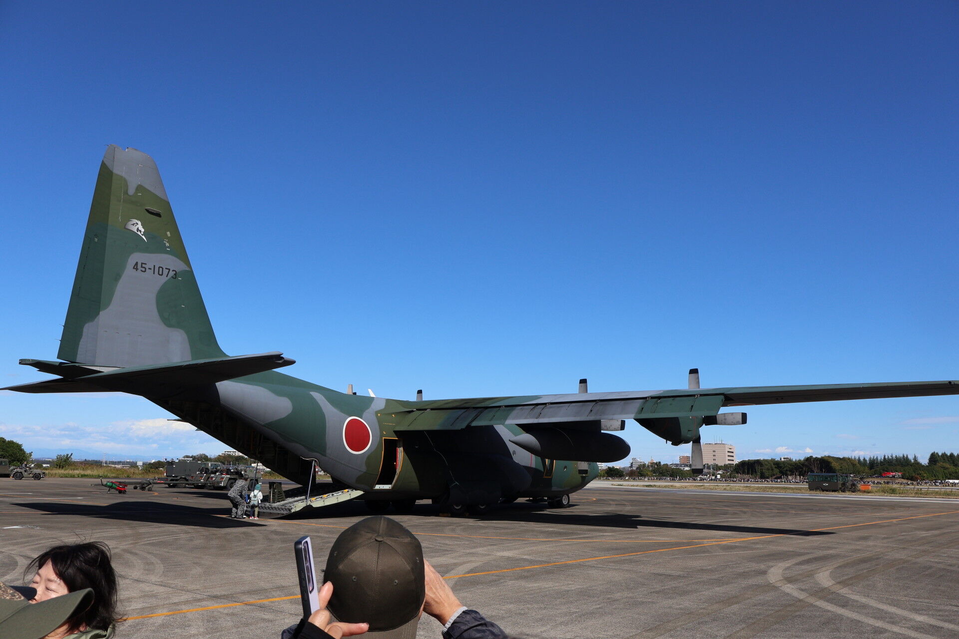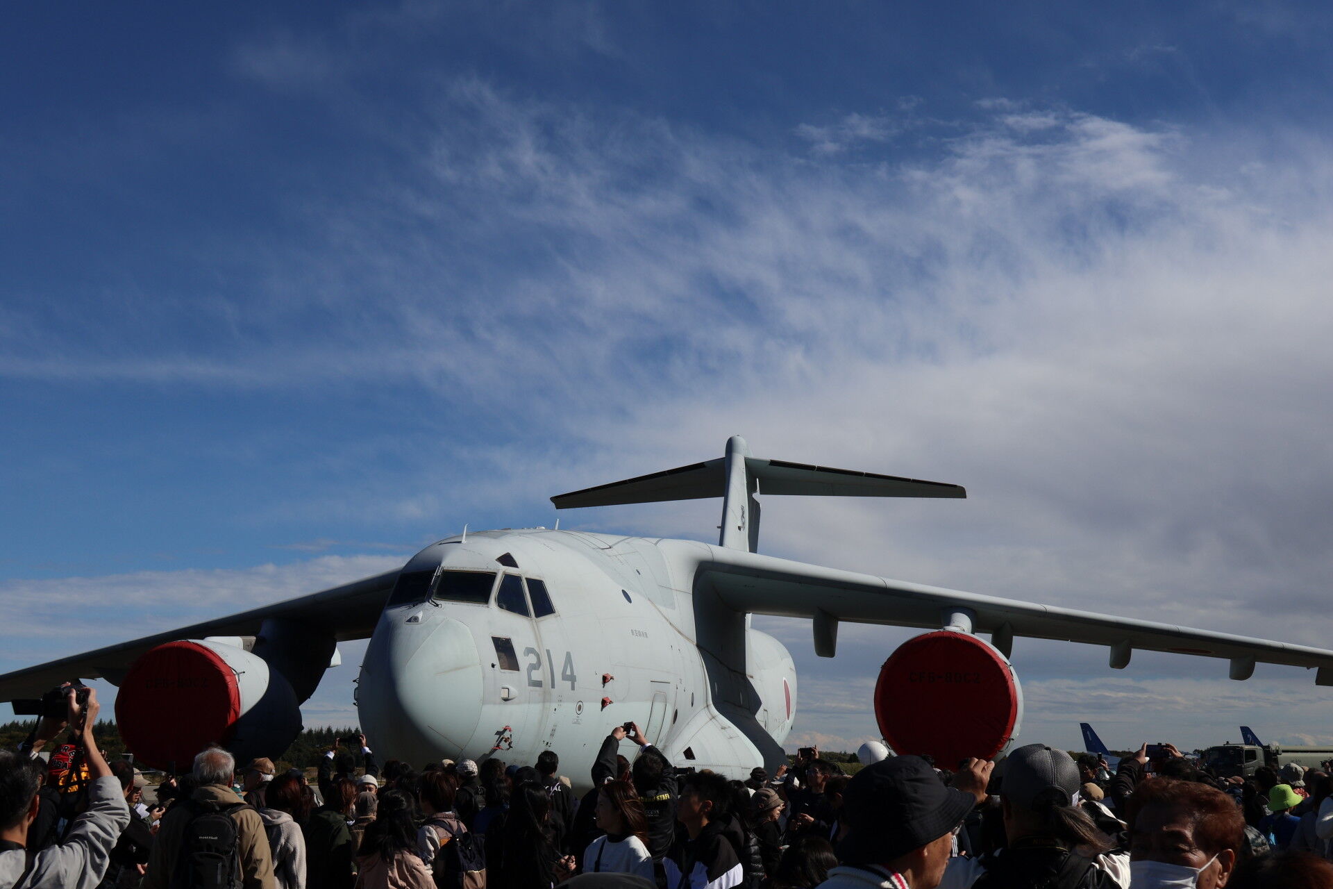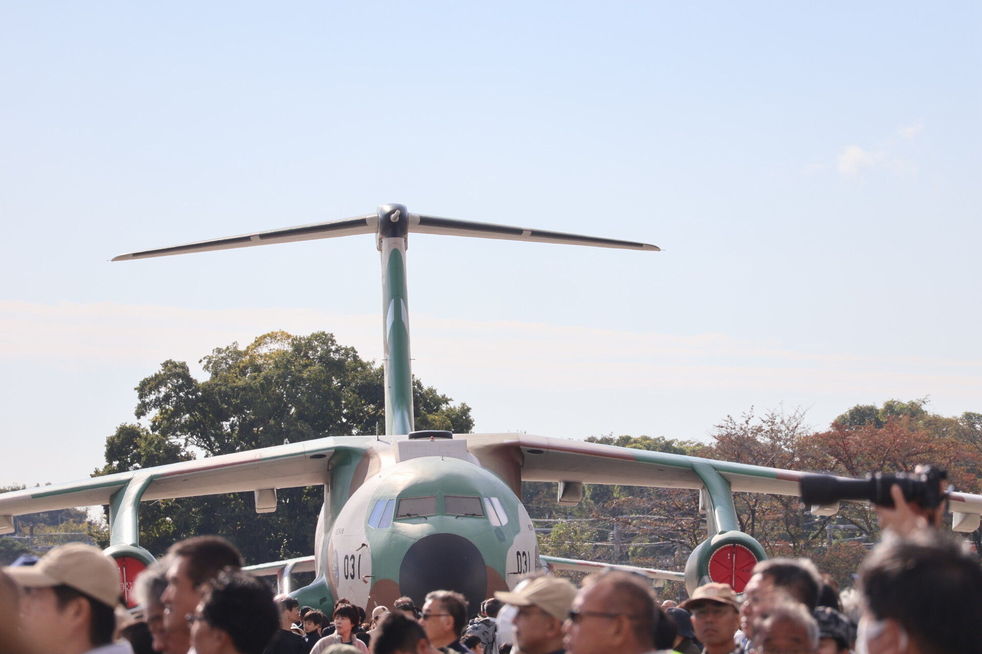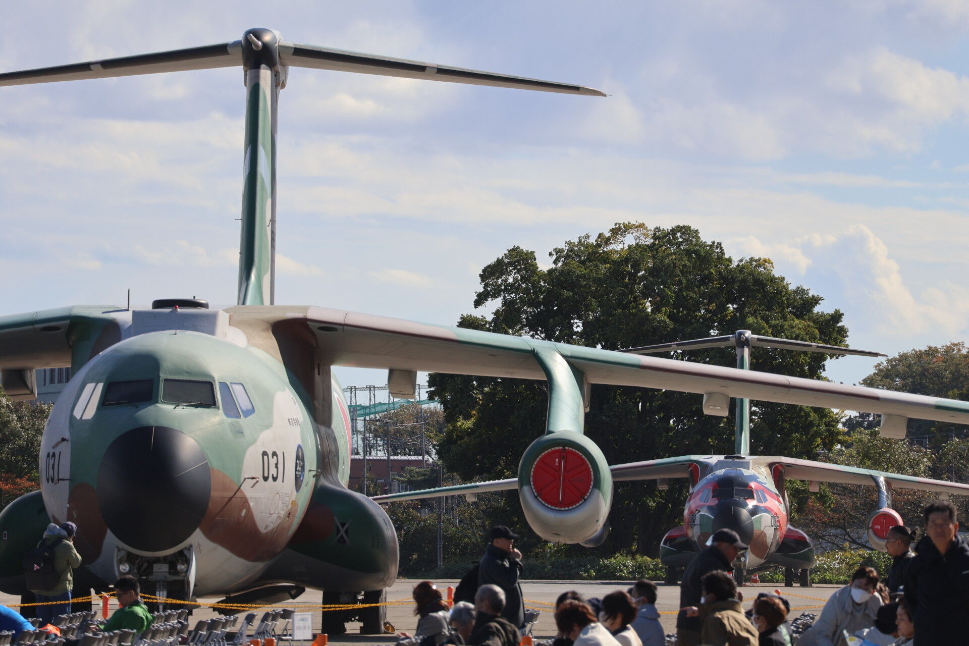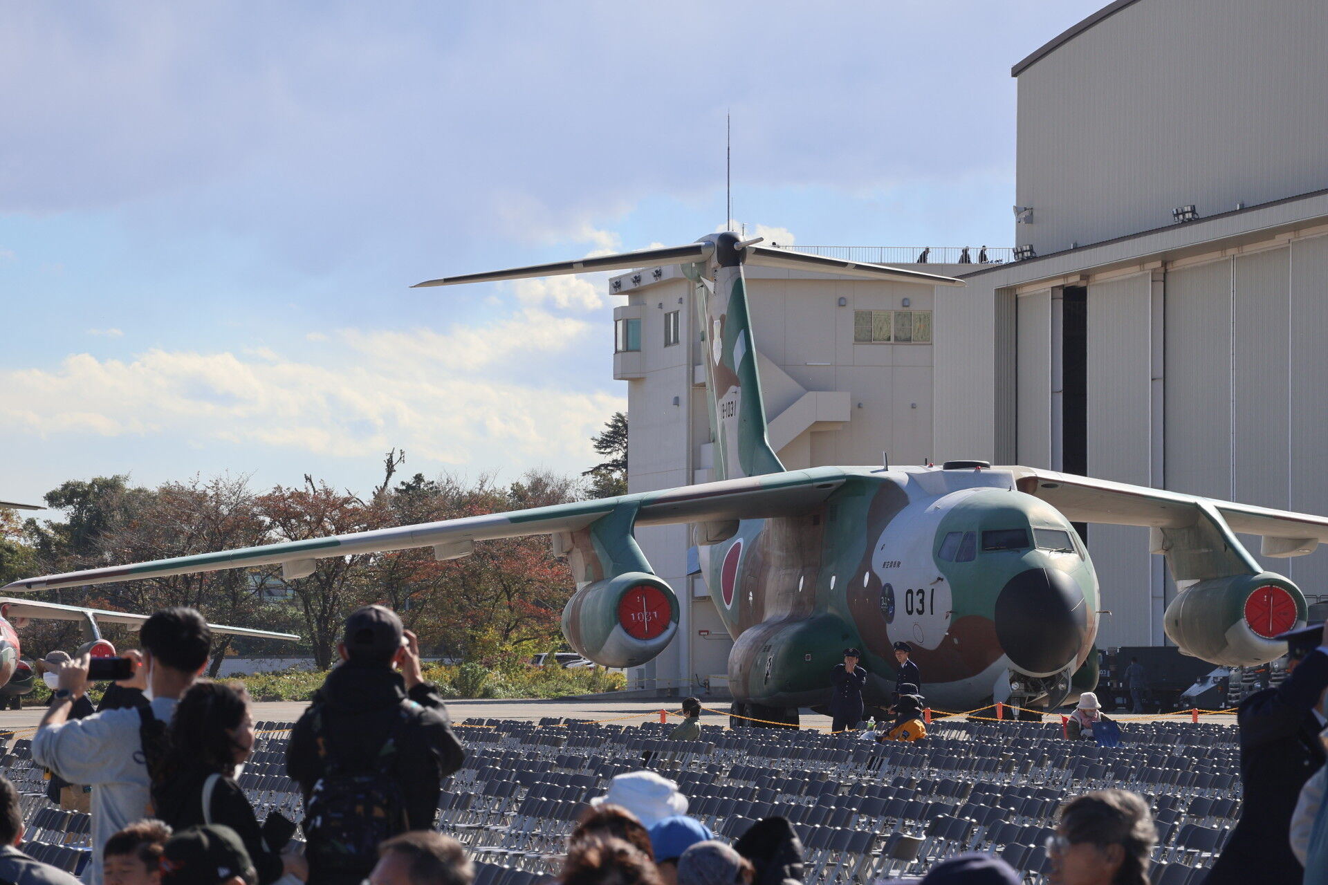 奥に見えるのは昨年の航空祭でラストフライトを行って退役したC-1の最終号機、31号機。