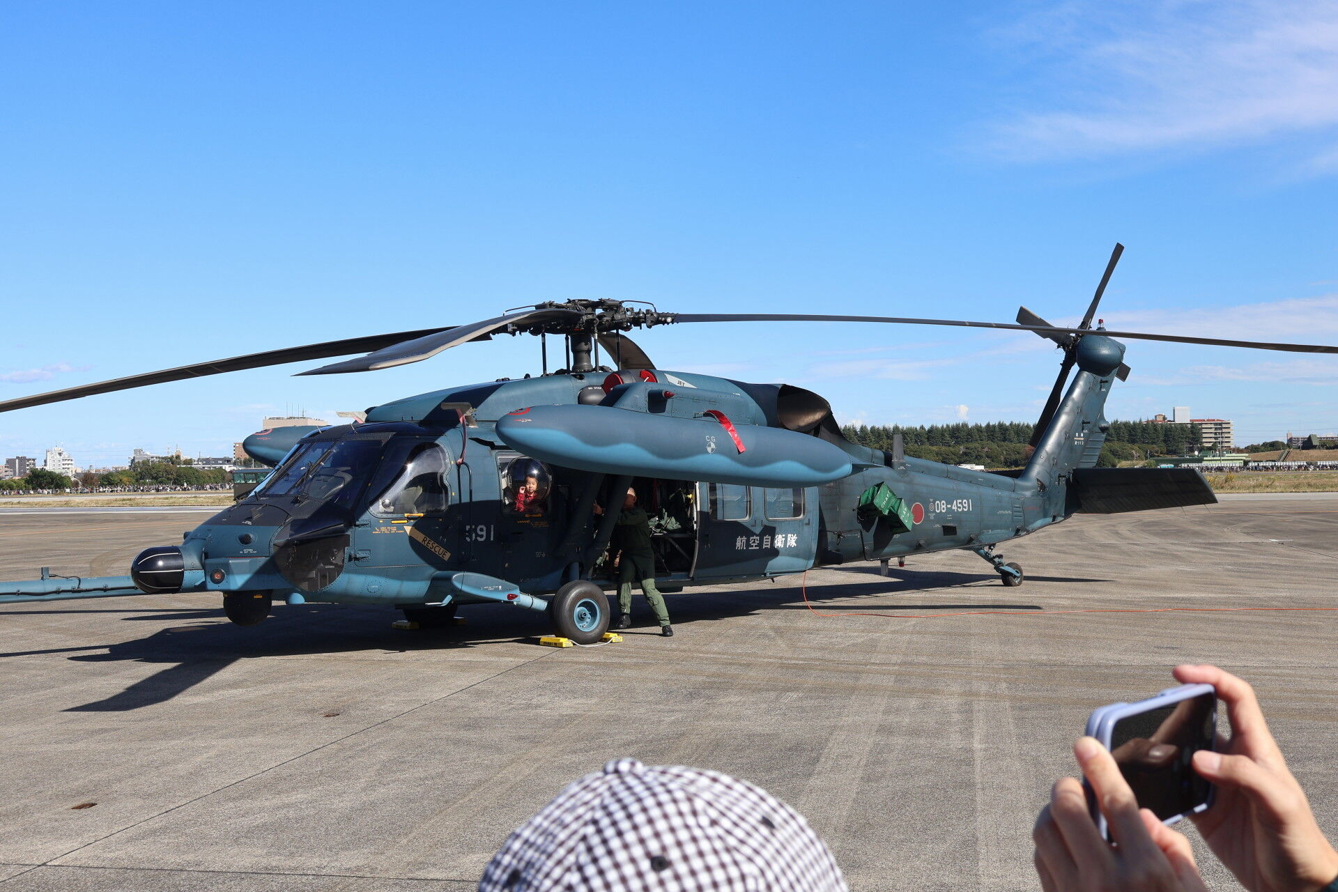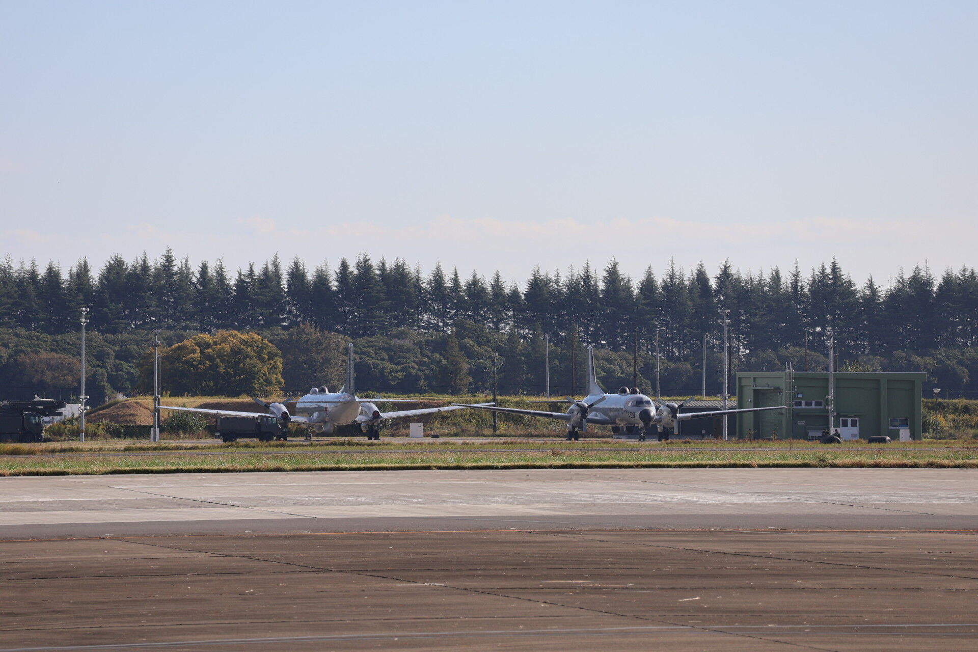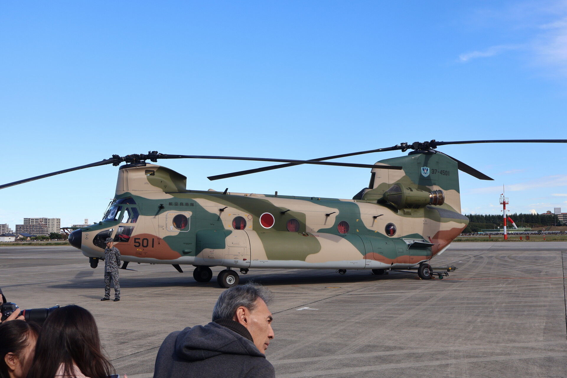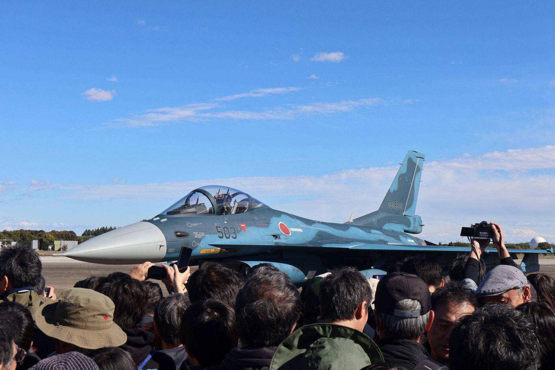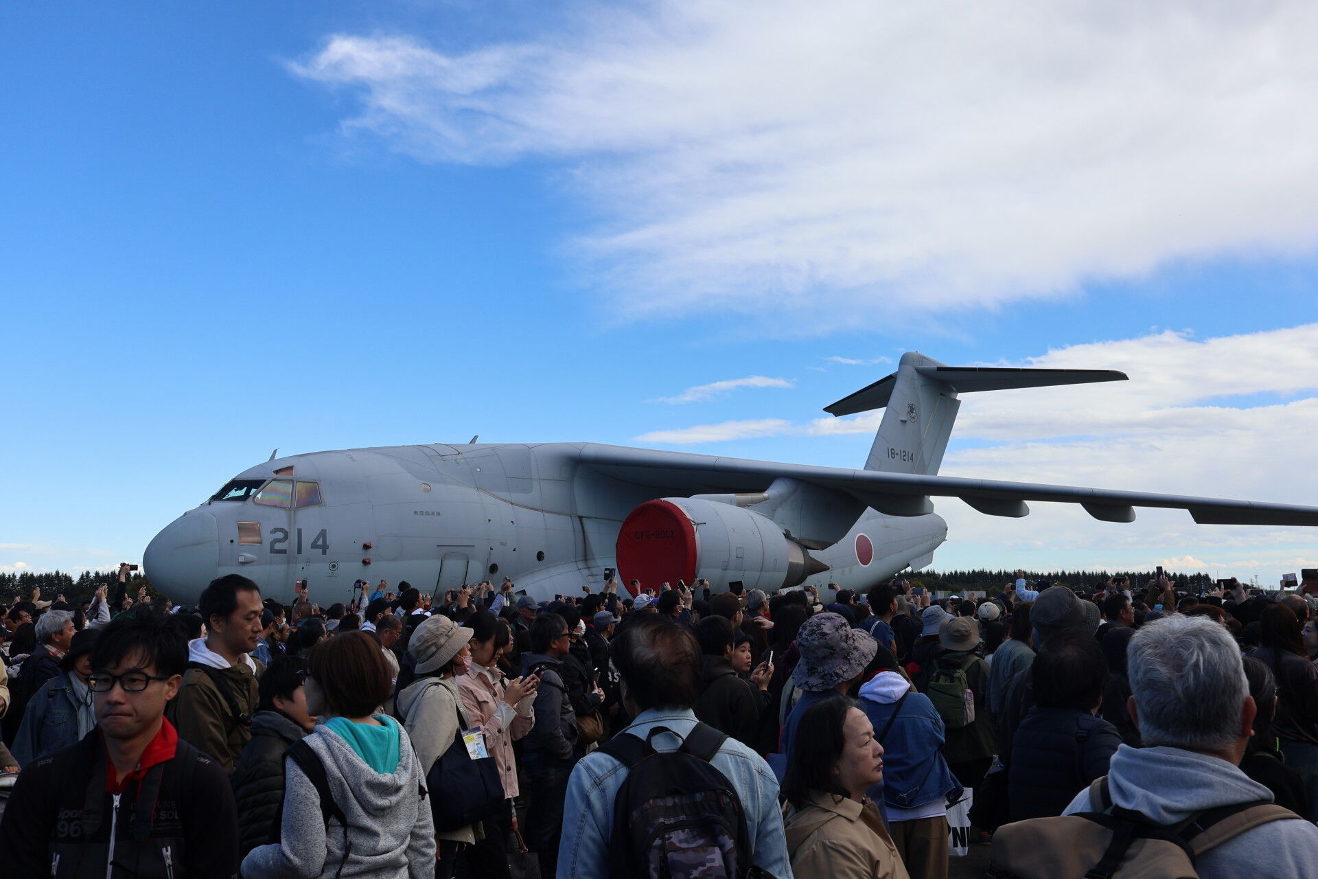 奥に見えるのは昨年の航空祭でラストフライトを行って退役したC-1の最終号機、31号機。