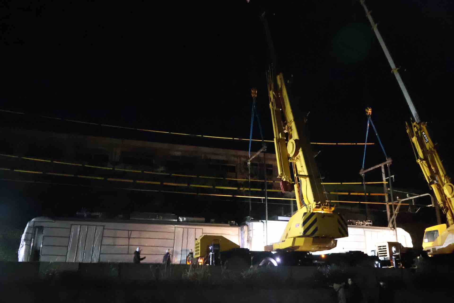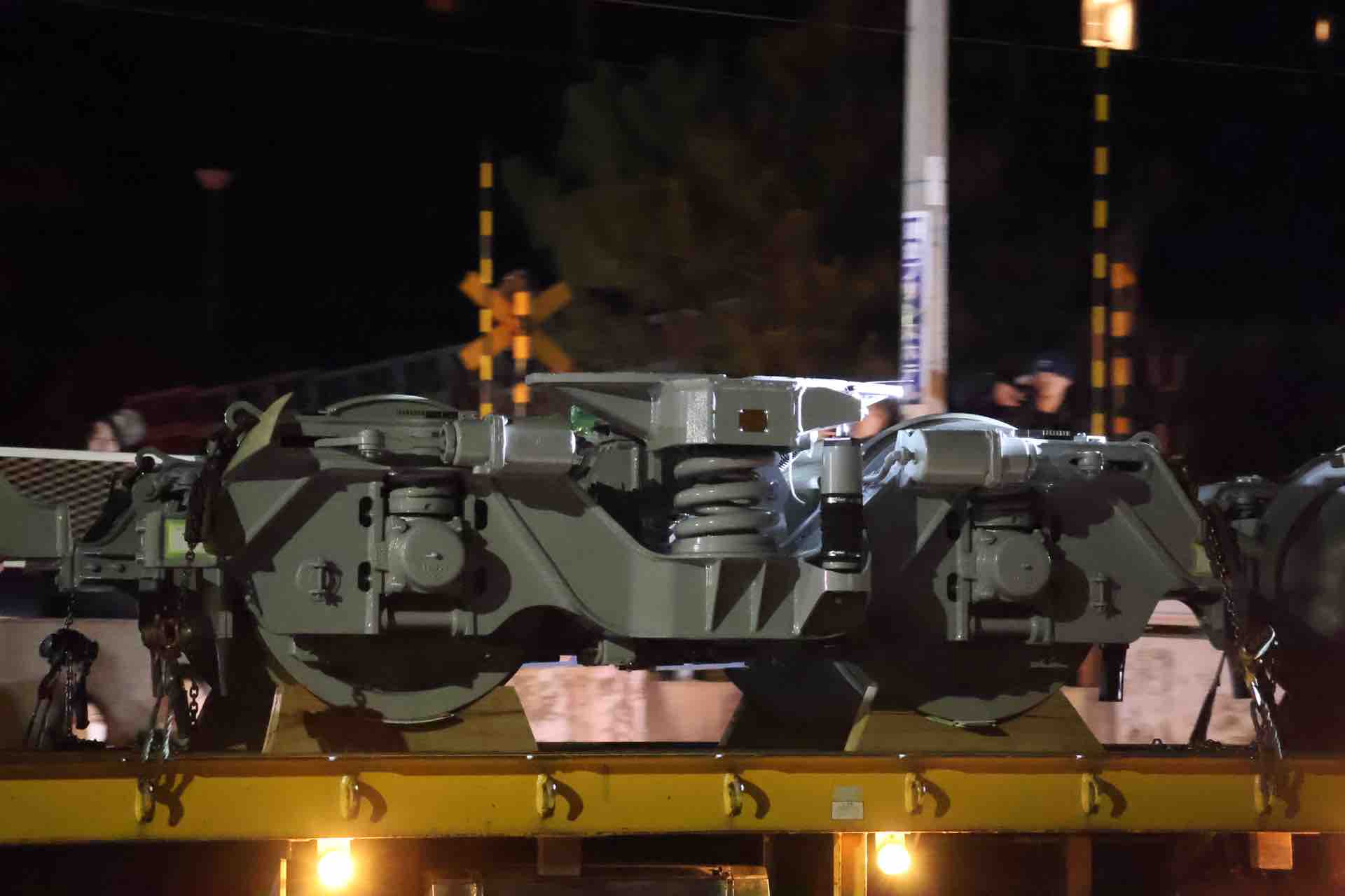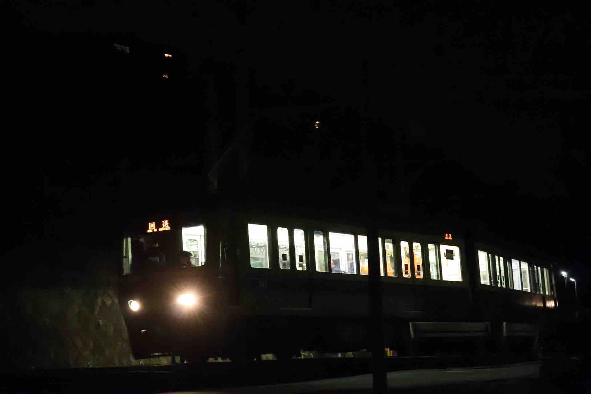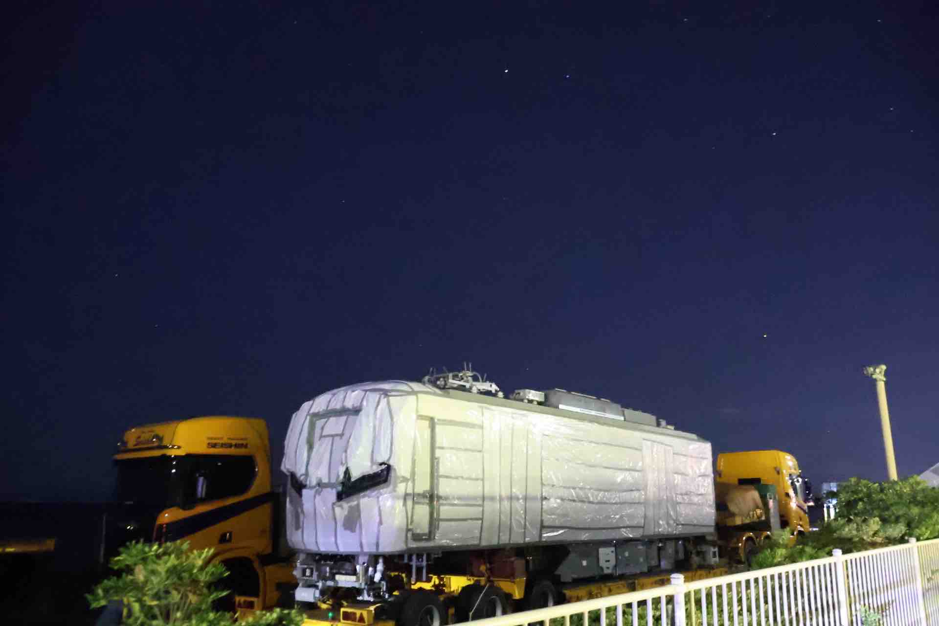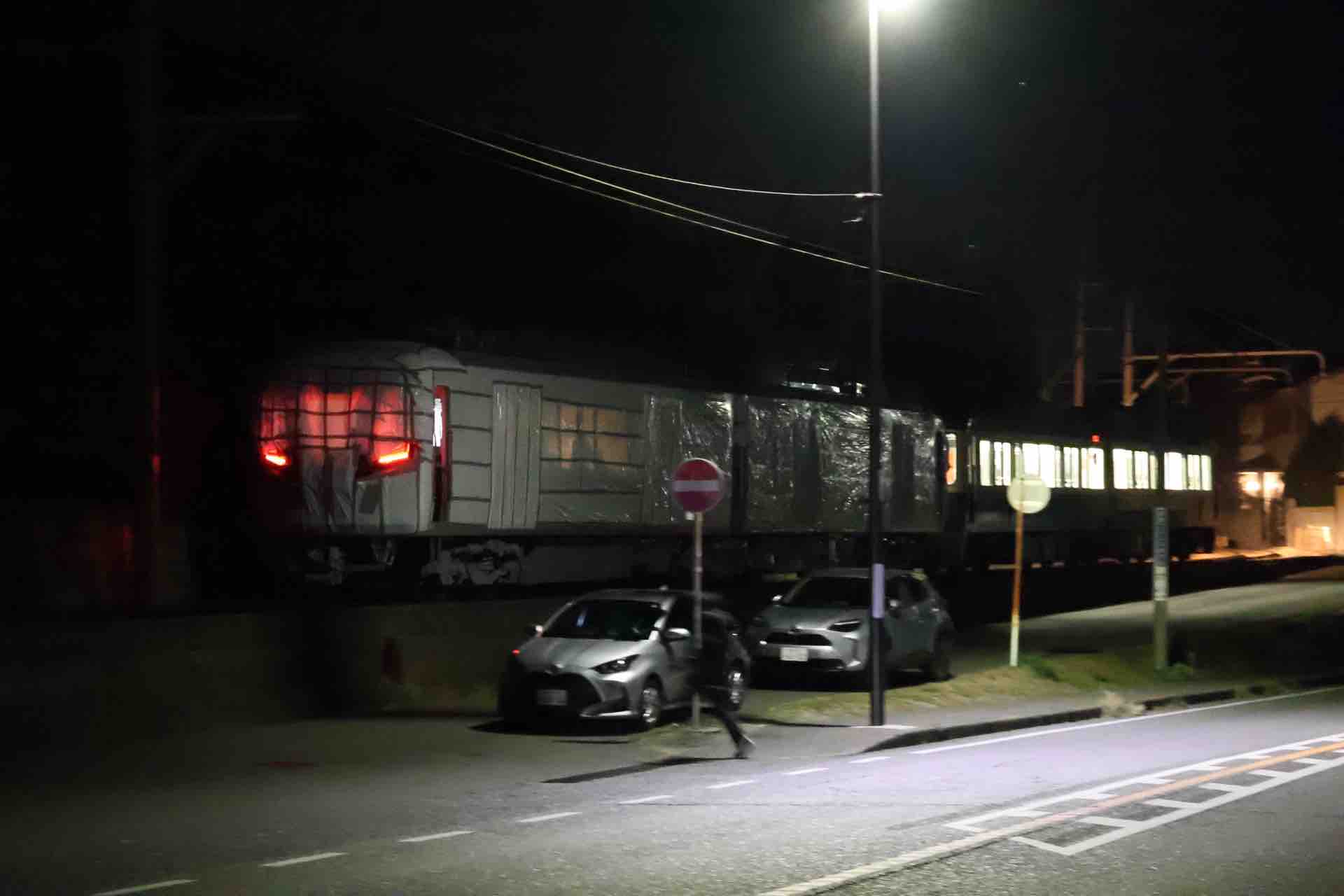 夜に再訪したら、台車が運ばれていくところを見ることができまして。