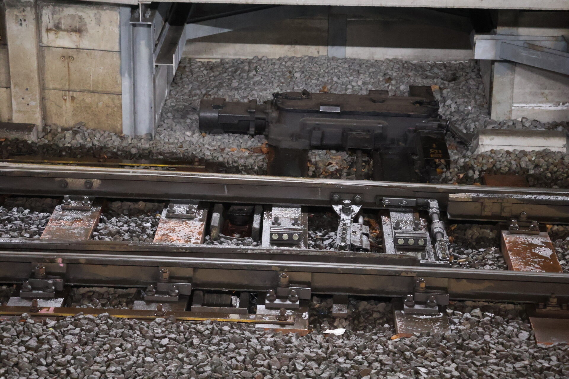 転轍機の可動部の凍結を防ぐための灯油ヒーターなのです。