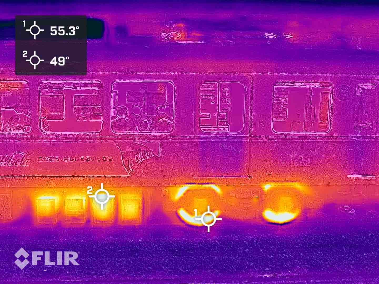赤外線カメラは炎の光に含まれる赤外線も取り込んでしまうのでこれは目安と思ってみてください。