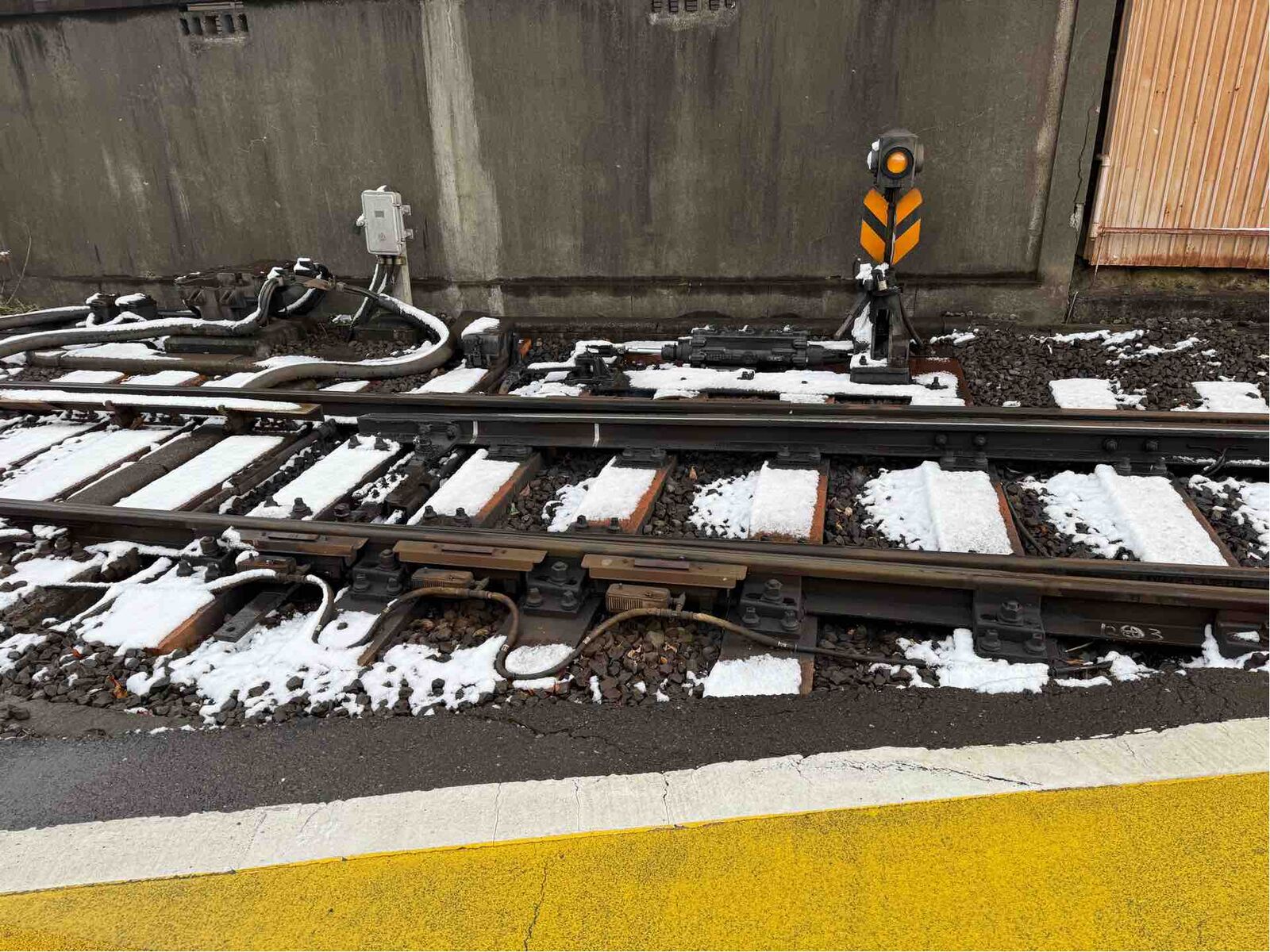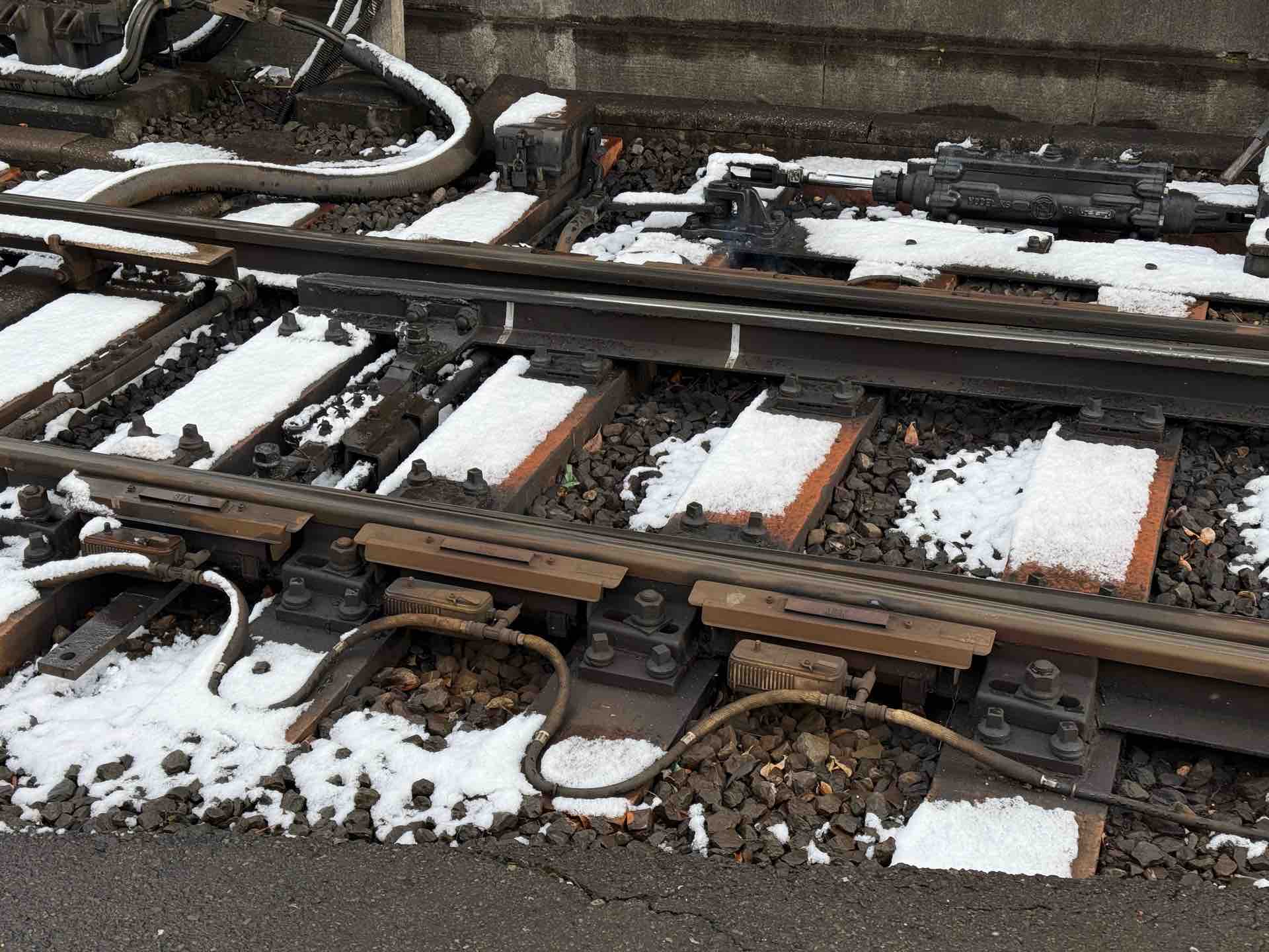 とはいえ、年に一度でも降る雪の対策として、ポイントの誤作動を防ぐためには、雪をためない、押し固めない、凍らせない。という仕組みが必要です。