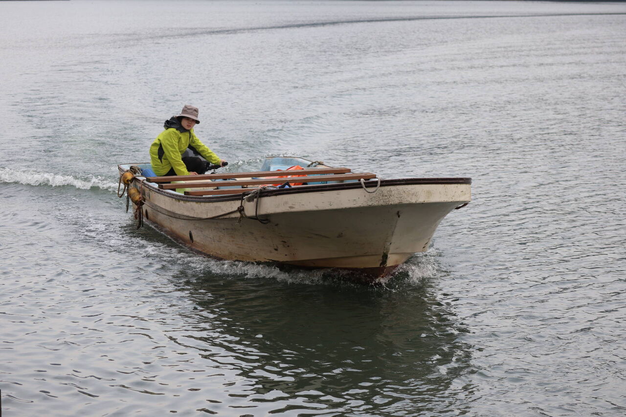 ぶっちゃん氏が電話を入れると、対岸からモーターボートが!