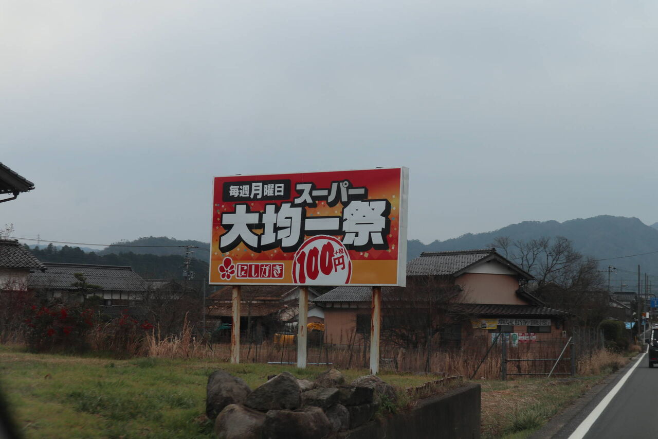 毎週月曜日の広告、7日に1日しか出番がない広告をロードサイドに大量設置していくスタイル。凄いぞにしがき…。