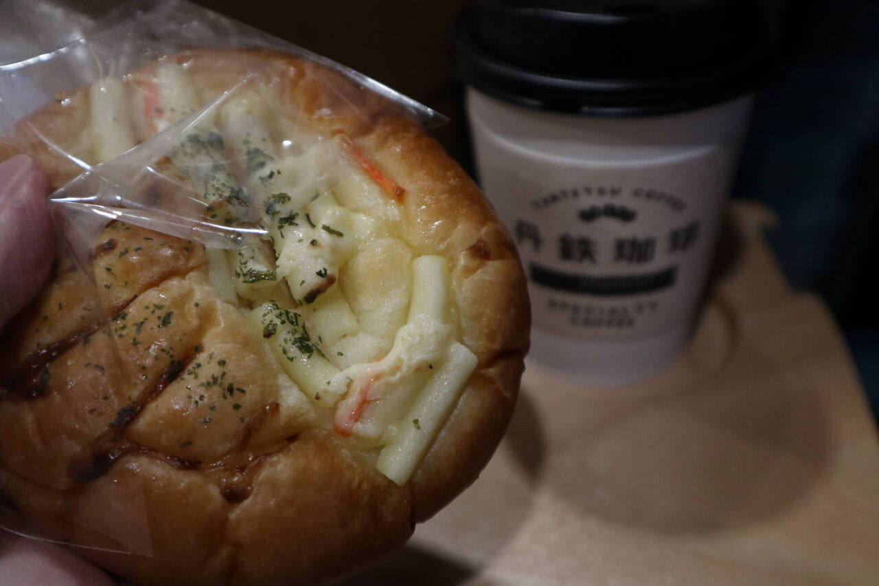 さっそく、宮津駅の丹鉄珈琲で買ったコーヒーとパンを広げます。