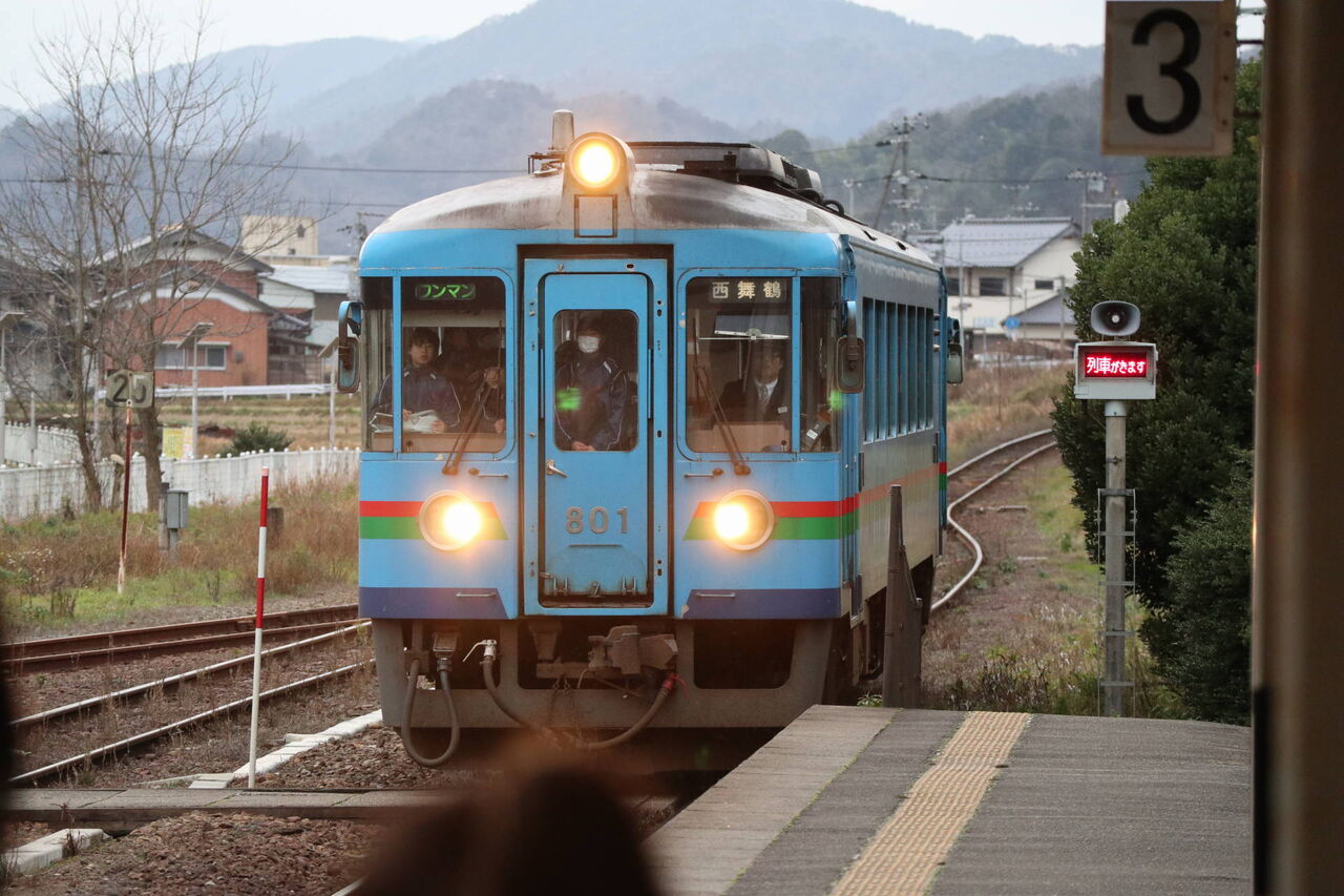 丹鉄のホームに新車が入線。