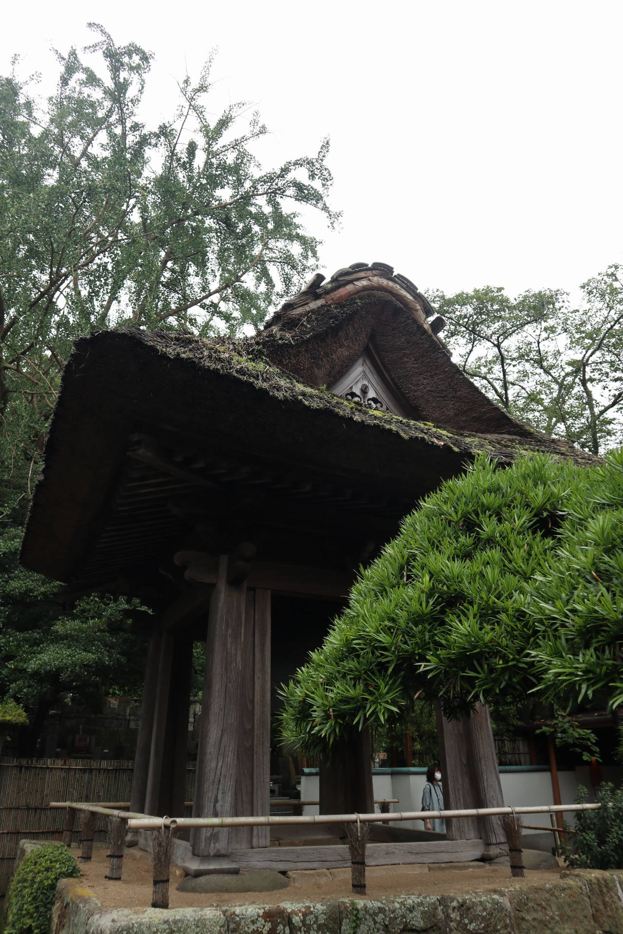 だいぶ雨がザーザー降ってきてしまったので、傘をさして、こんどは地名の由来になった浄明寺へ向かいます。