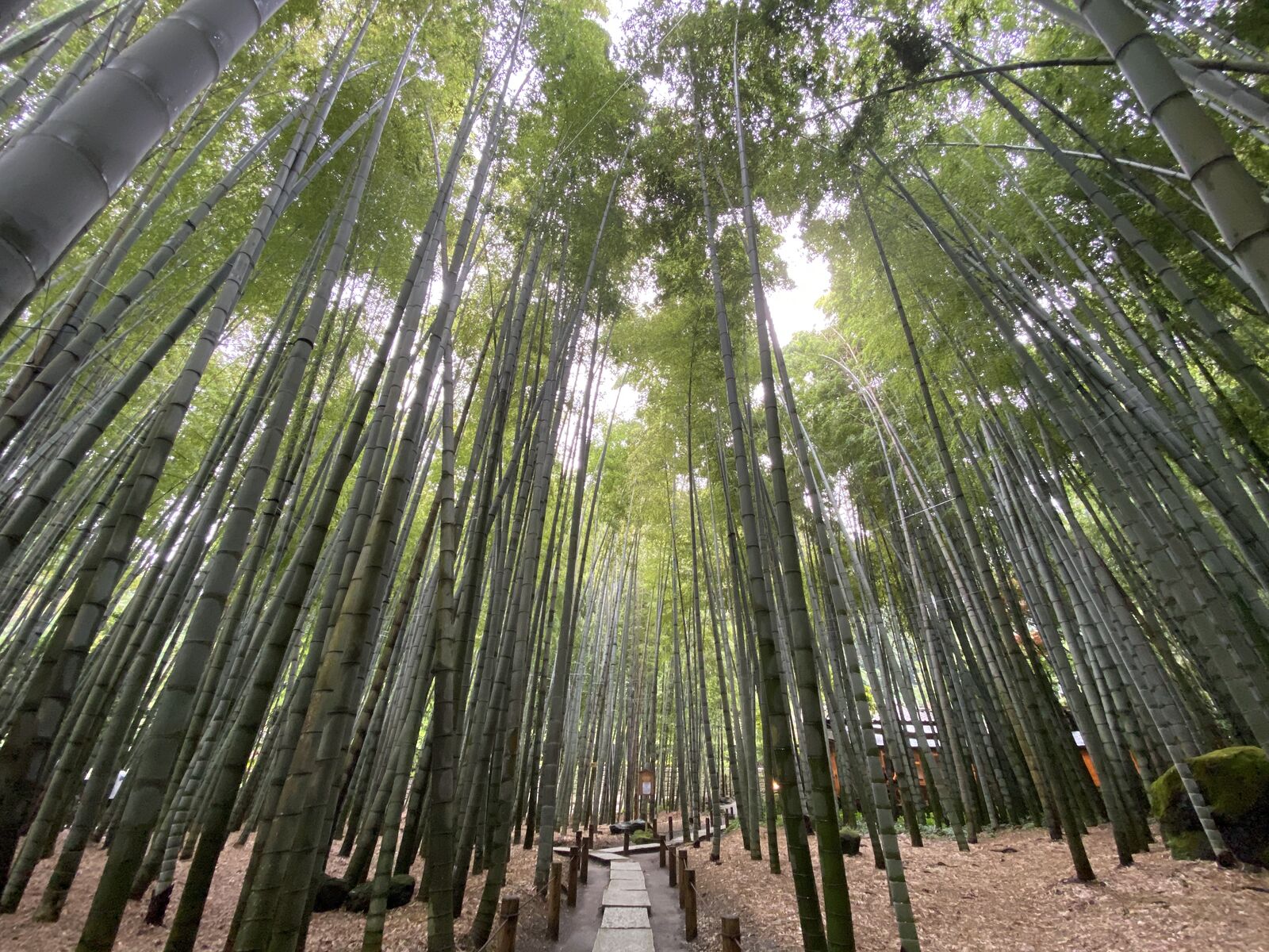 高く伸びる竹は糸で位置を調整されていて、かなり手をかけてこの景観を作っているようです。