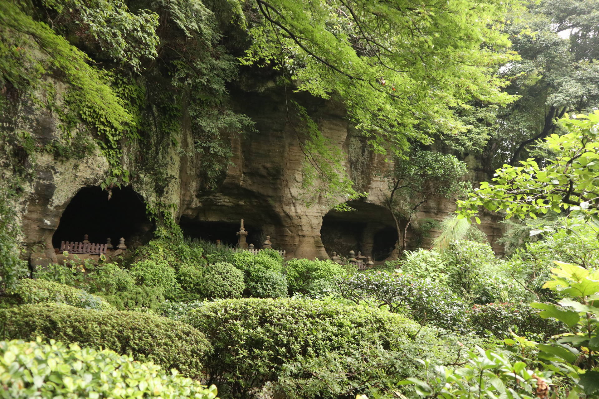 鎌倉の崖というのはあちこちにこのような横穴が掘られ、墓地として使用されていました。