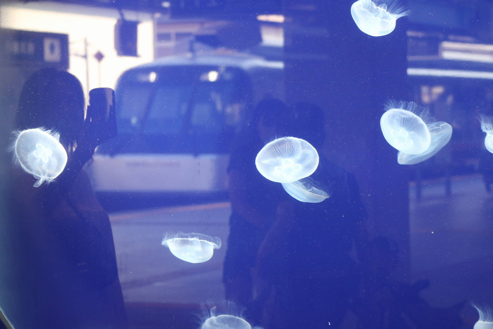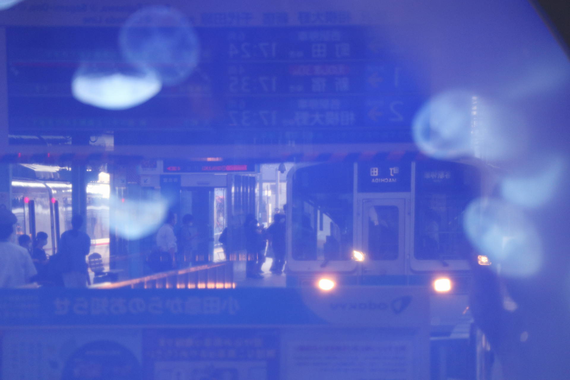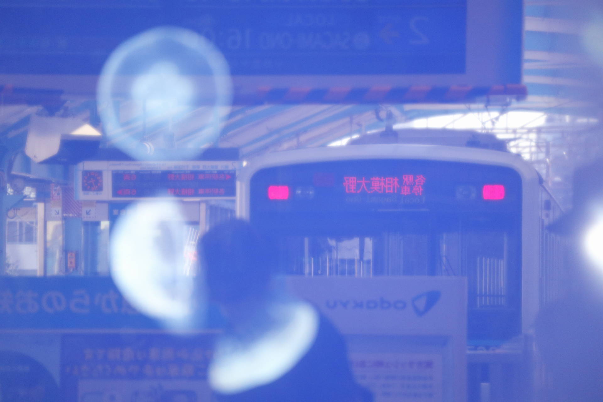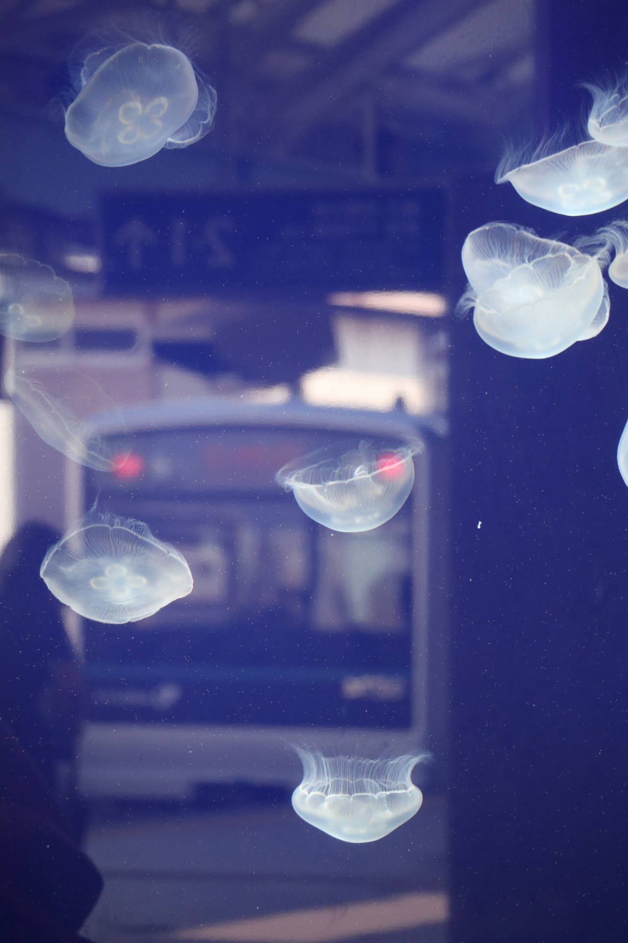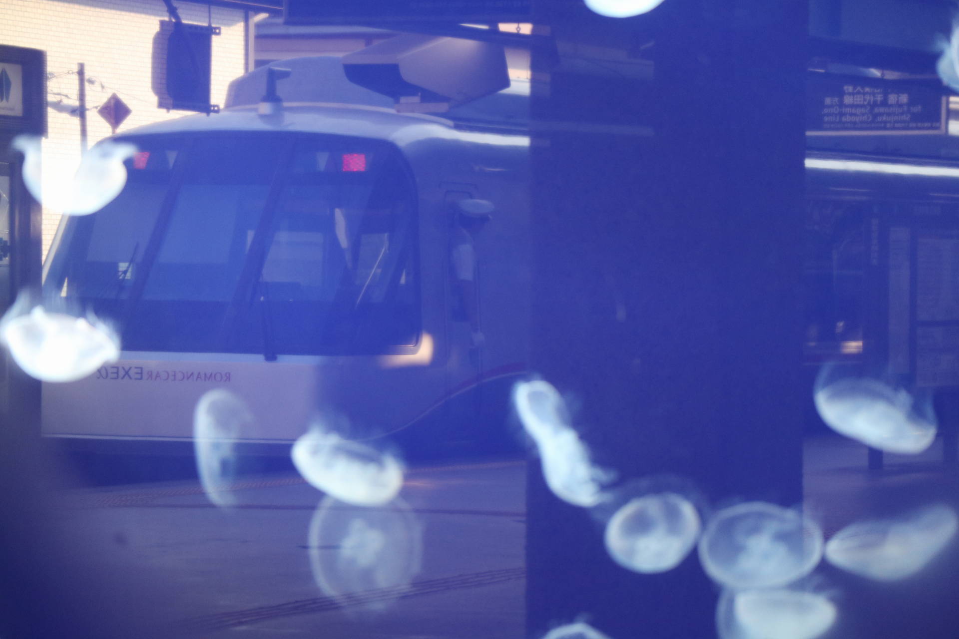 クラゲにピントを合わせると、電車がぼやけて写るわけですが、