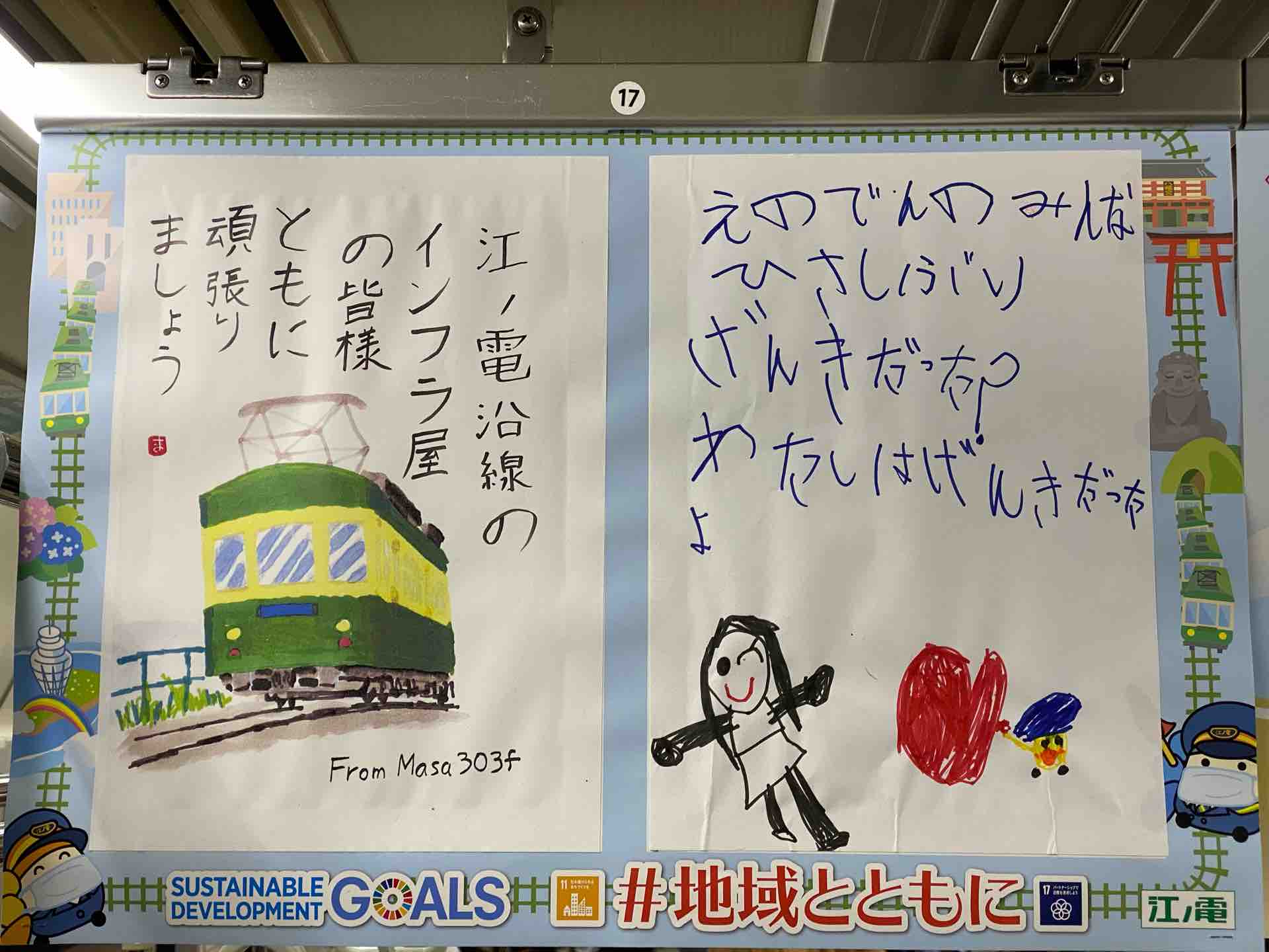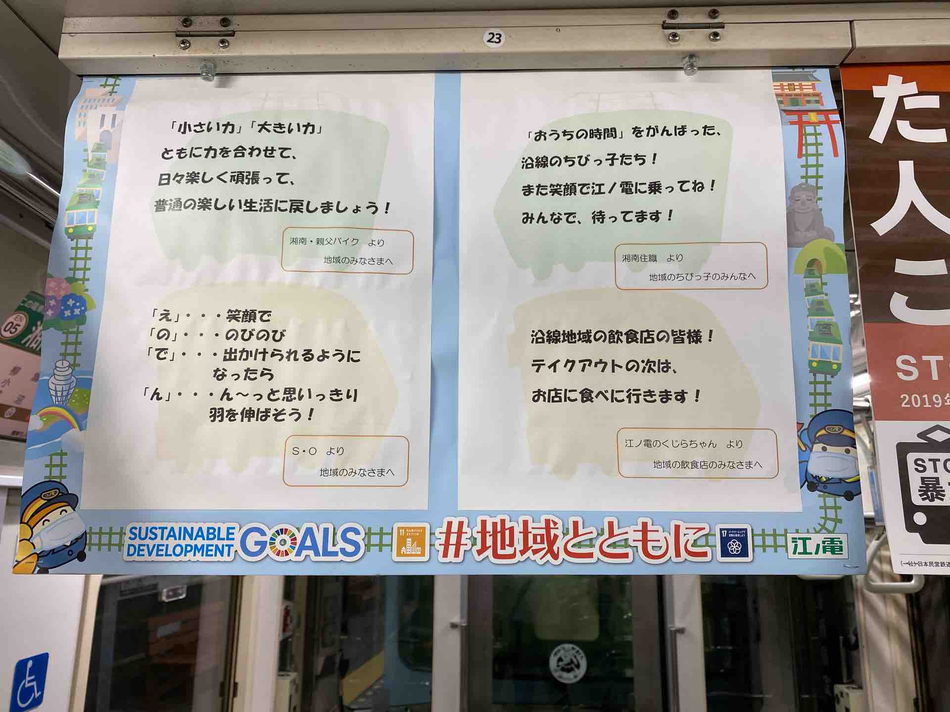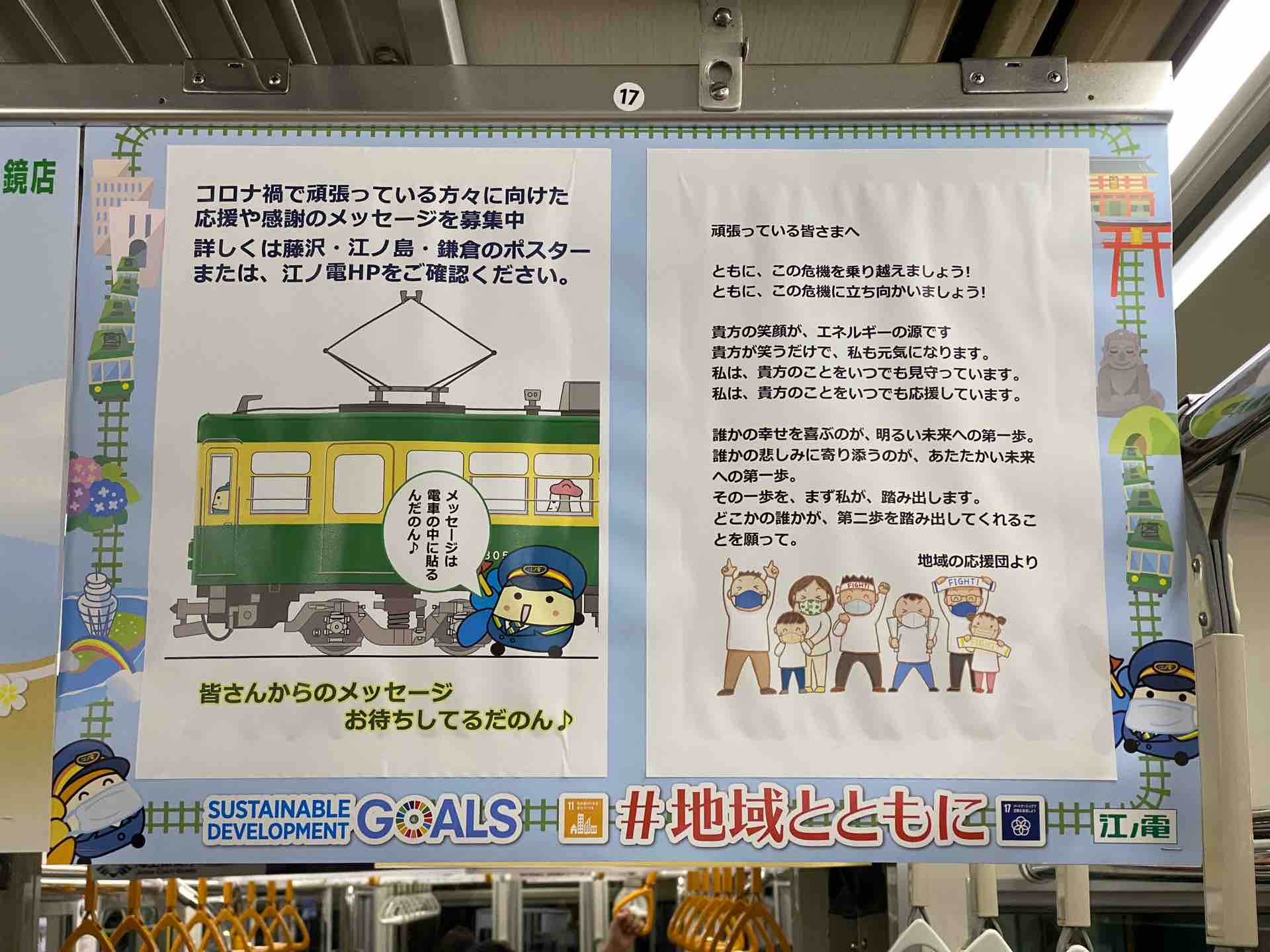 応援メッセージながらも江ノ電らしさがあって素敵。