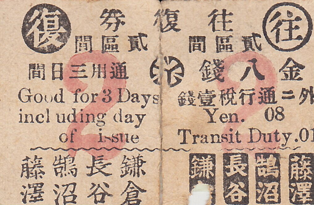 先ほどの2枚の切符では、上段左「大境」「行合」と、上段右「小町」「鎌倉」が差分になっています。