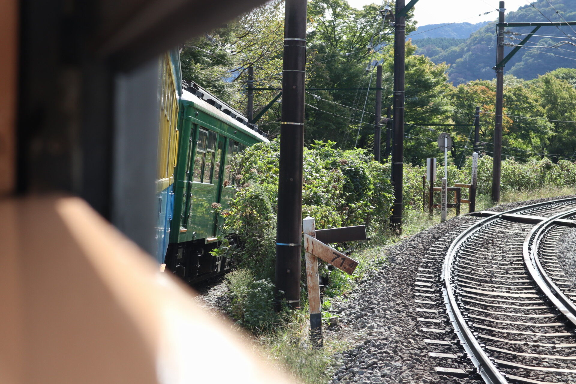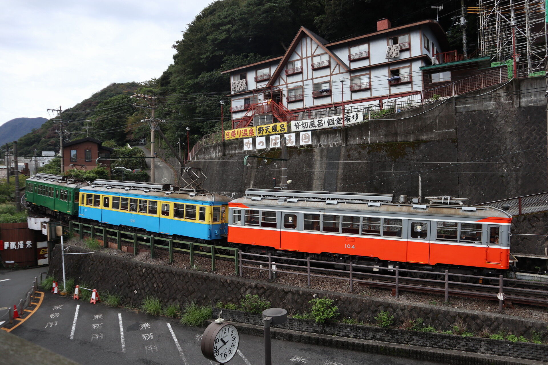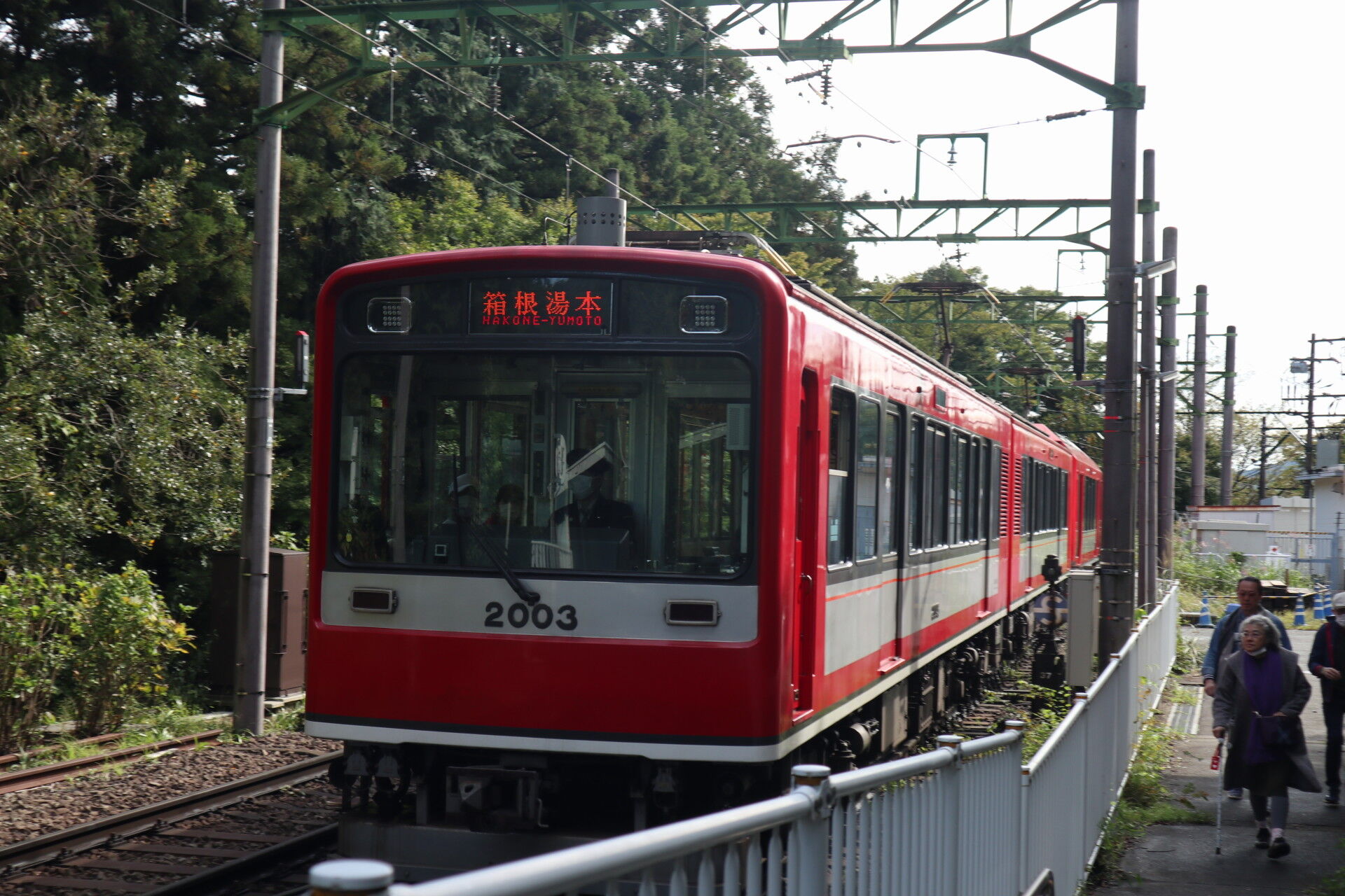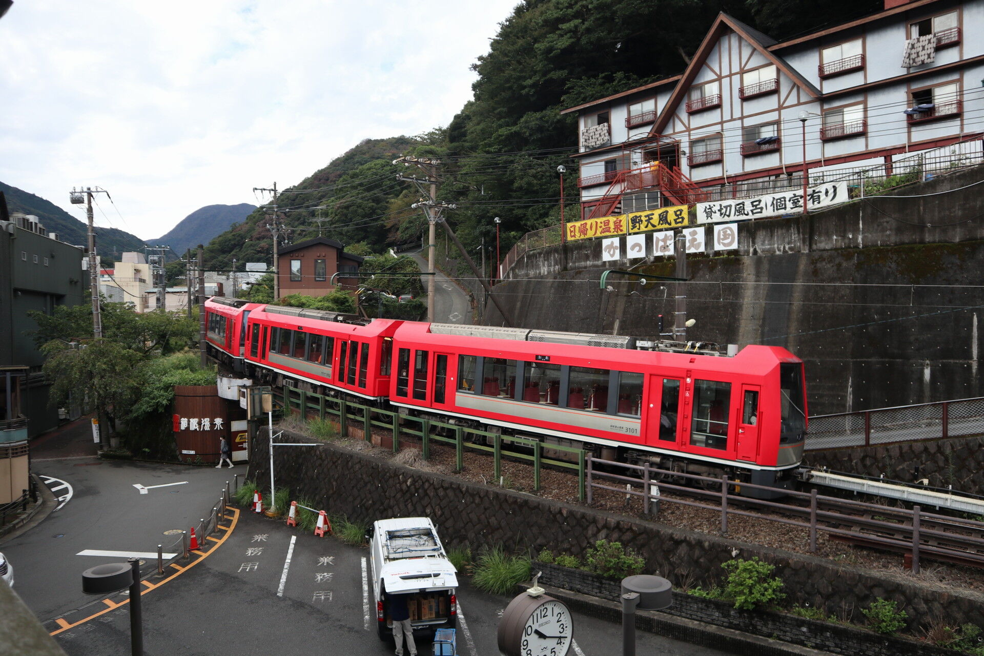 さて、ロマンスカーの前には、山岳区間を走る登山電車が待っています。