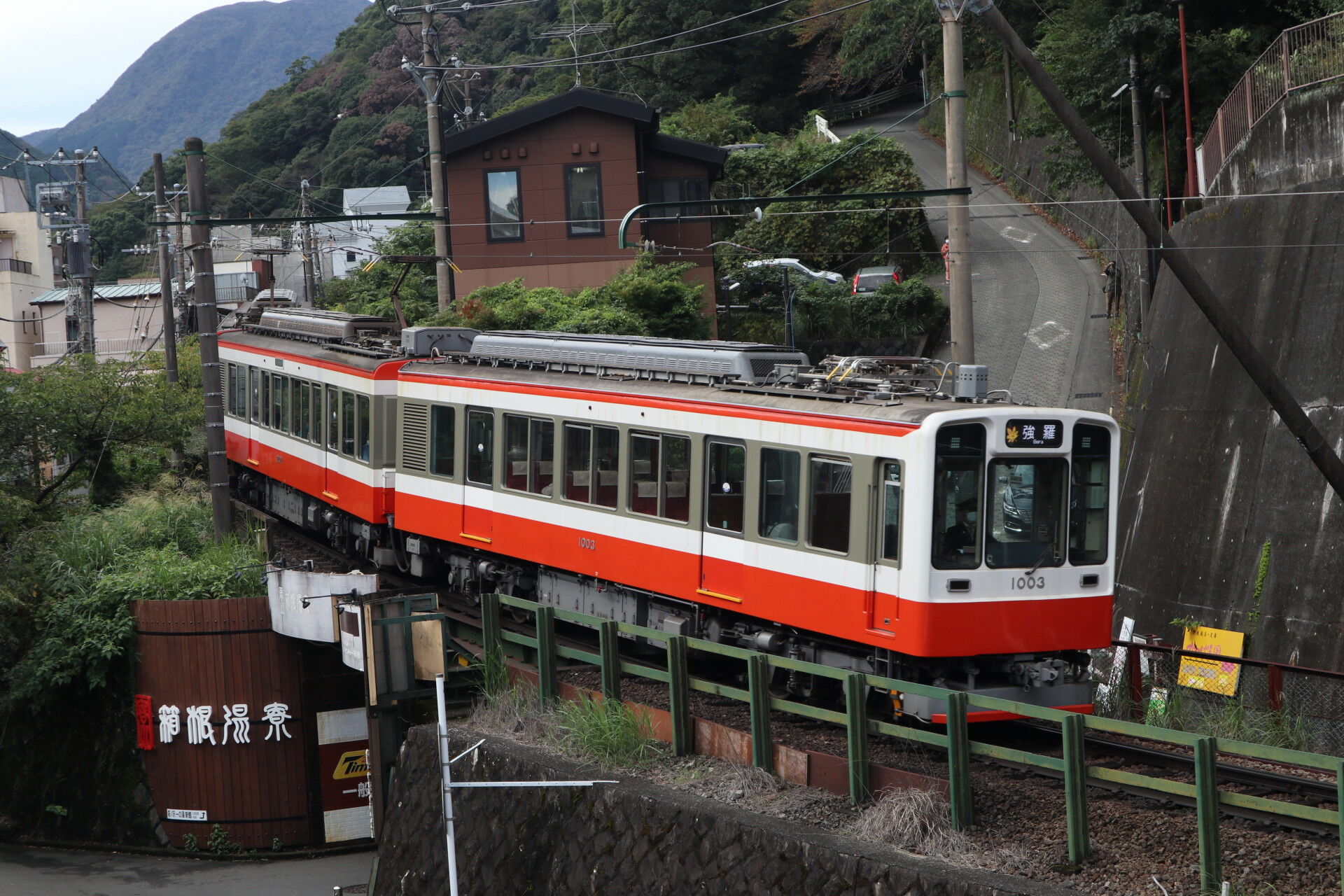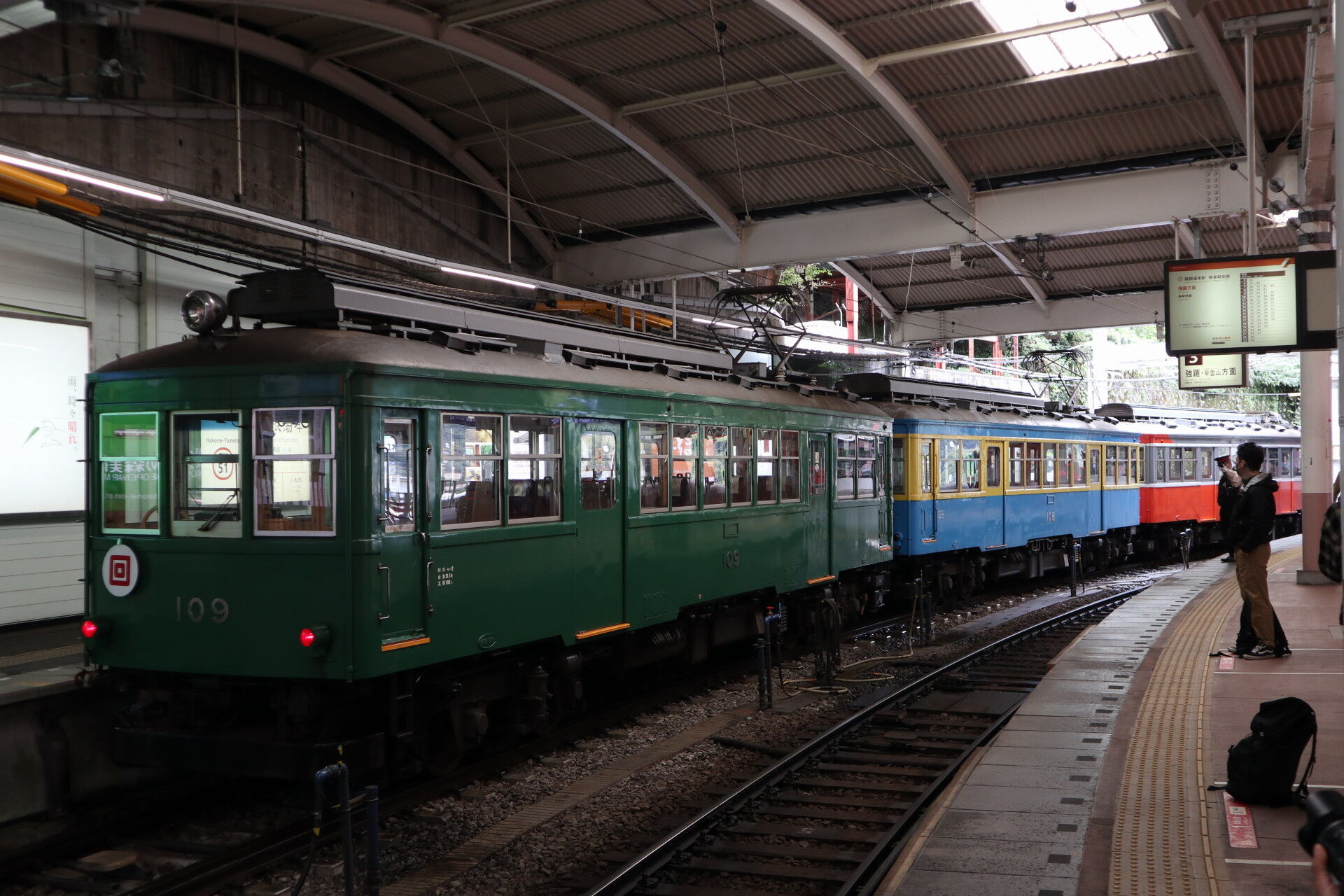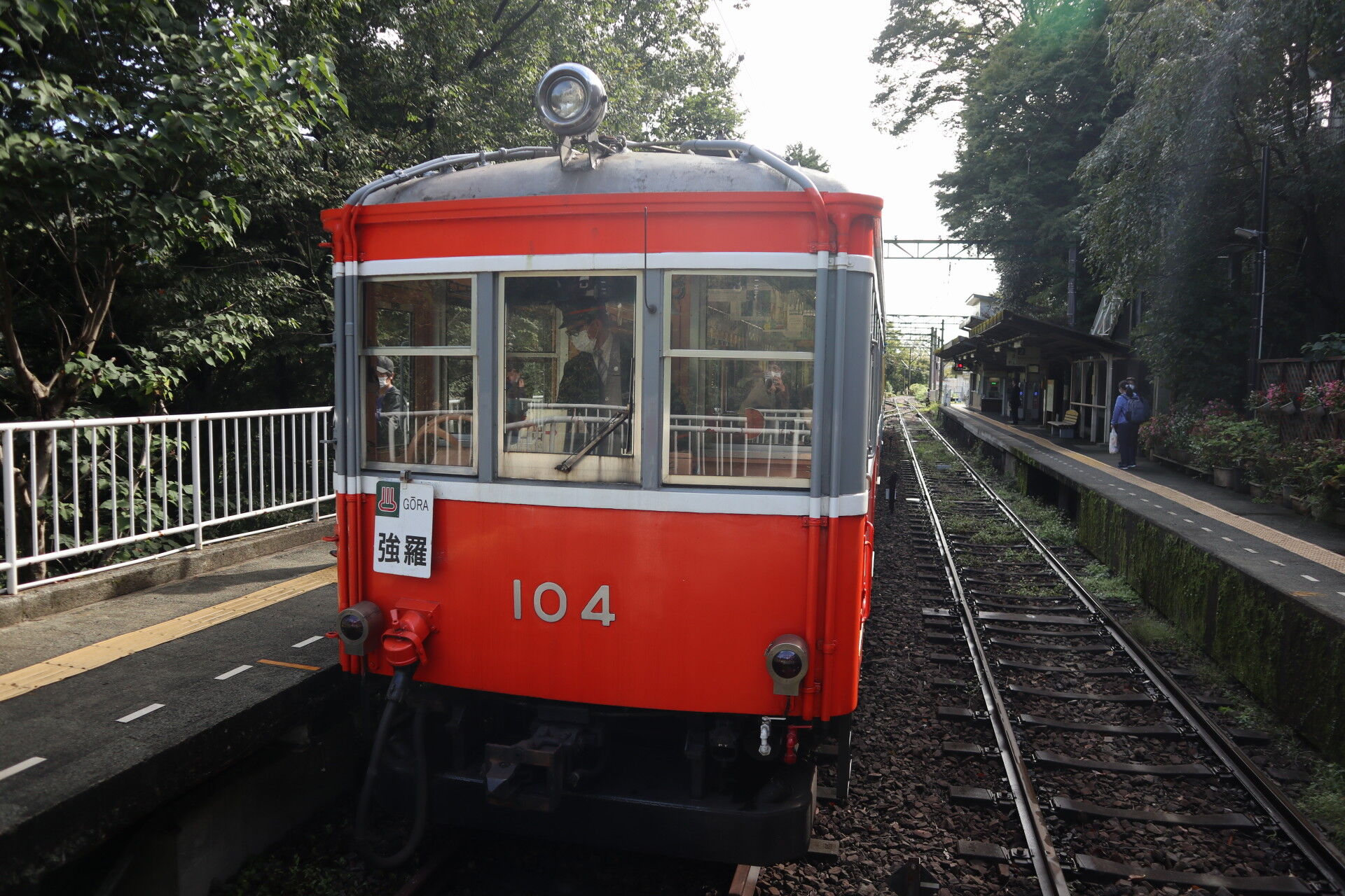 さて、ロマンスカーの前には、山岳区間を走る登山電車が待っています。