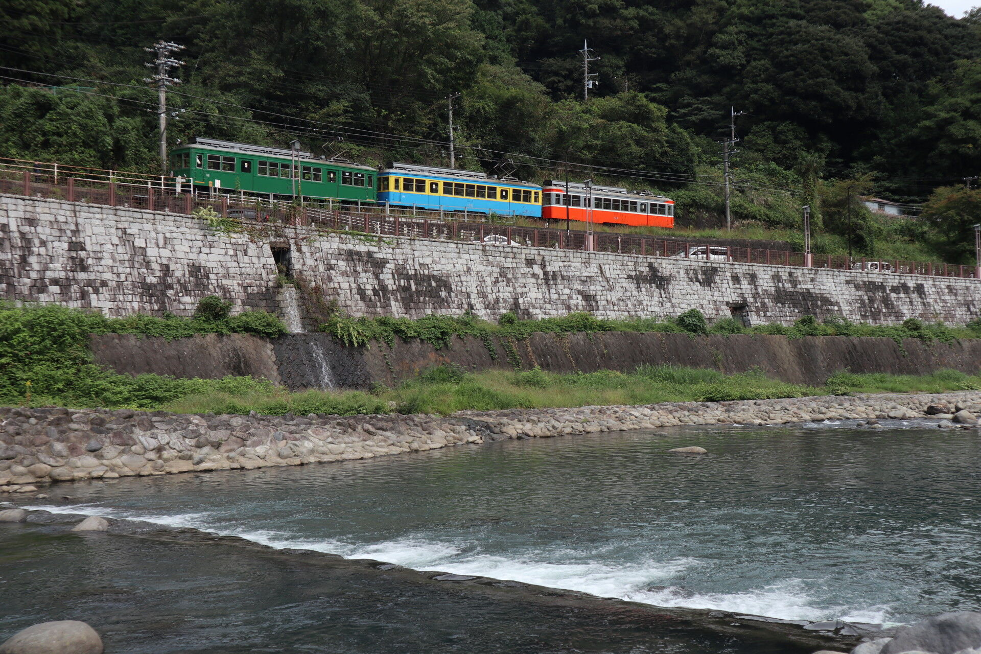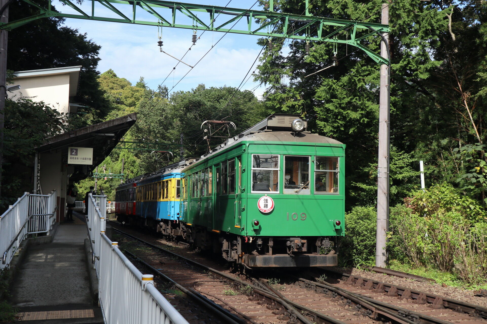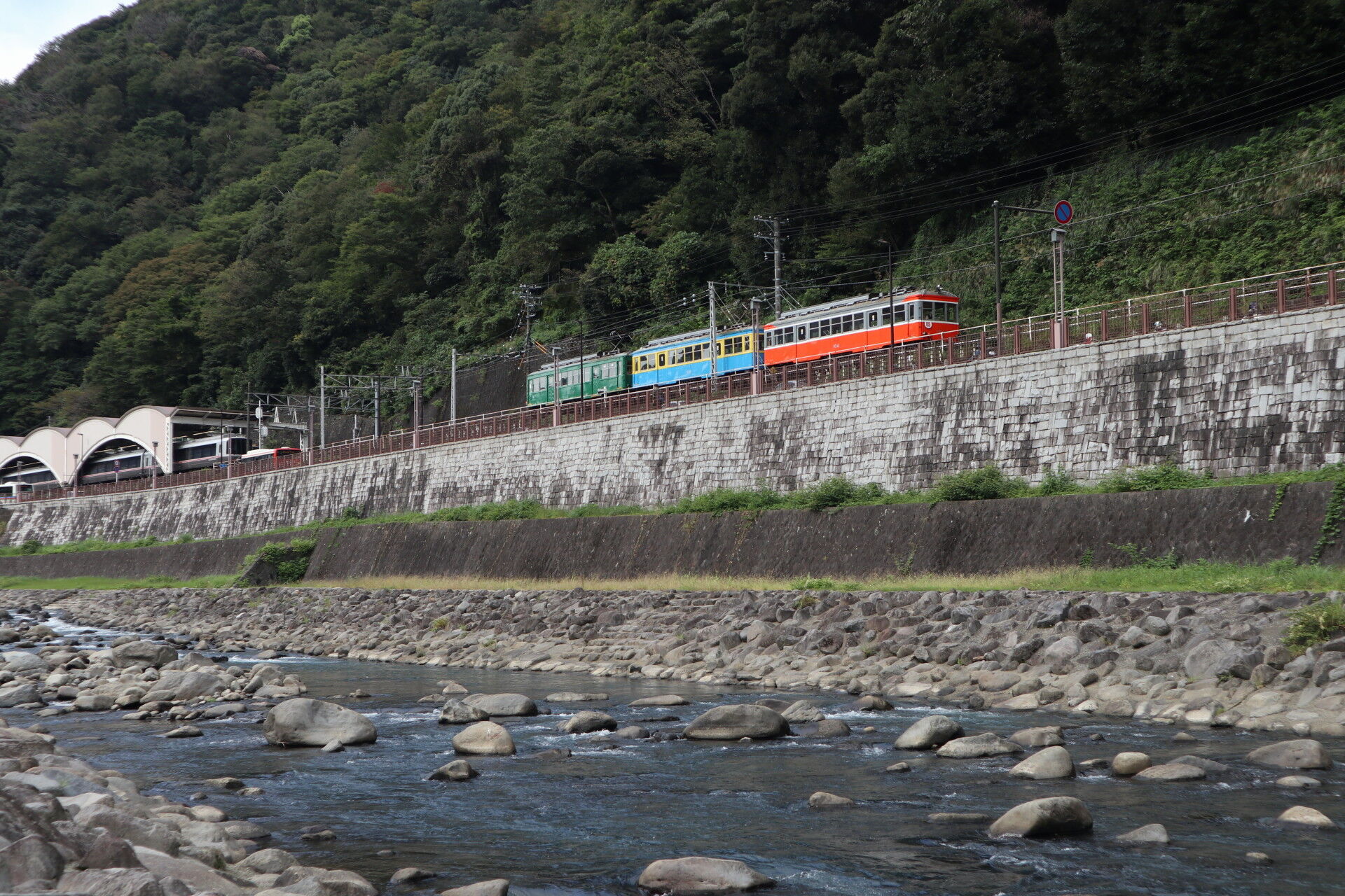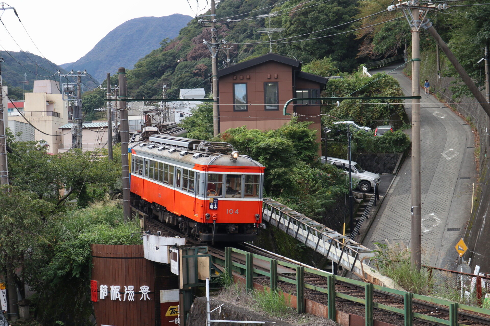さて、ロマンスカーの前には、山岳区間を走る登山電車が待っています。