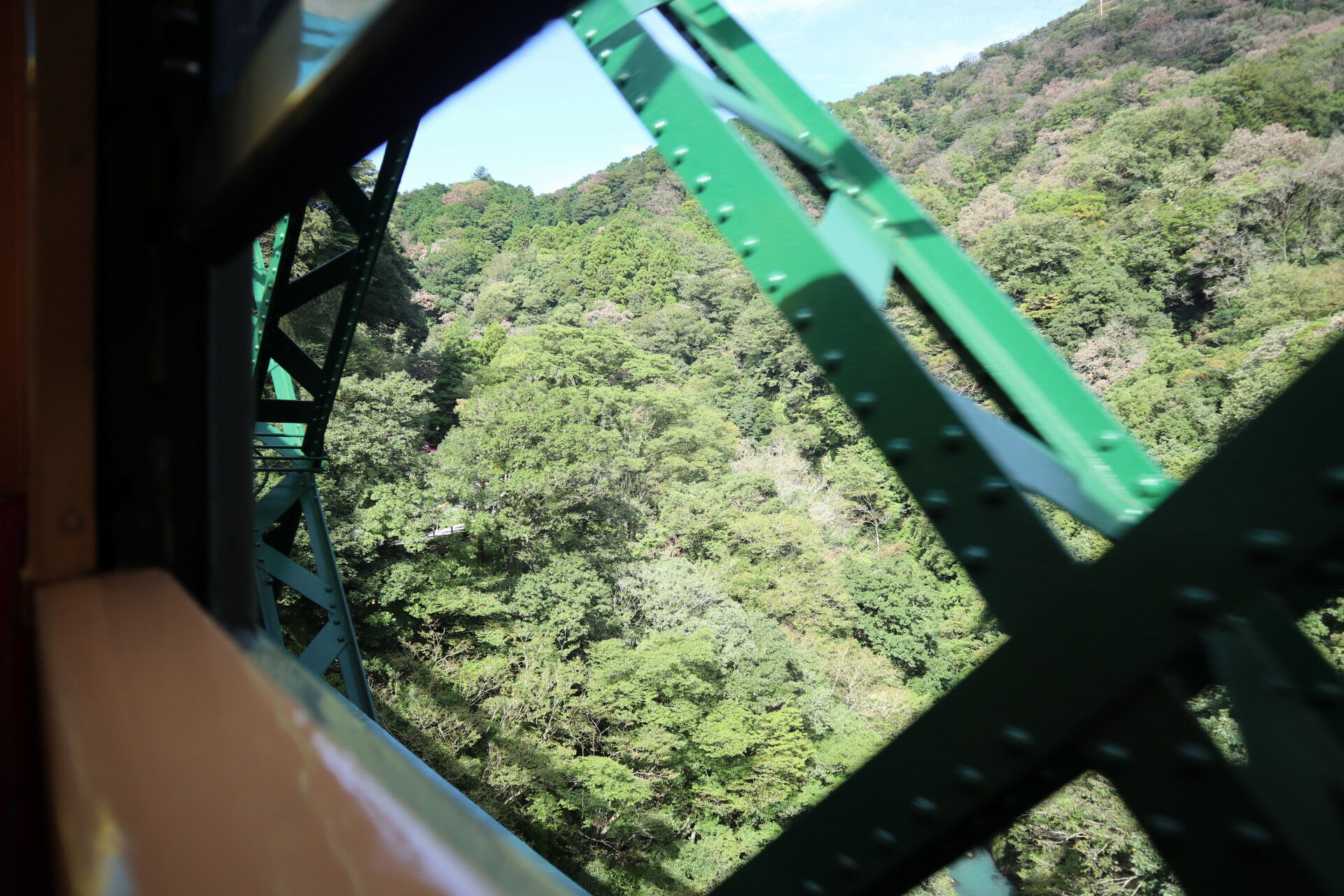 出山の鉄橋をこうして眺められるのもこの車ならでは。