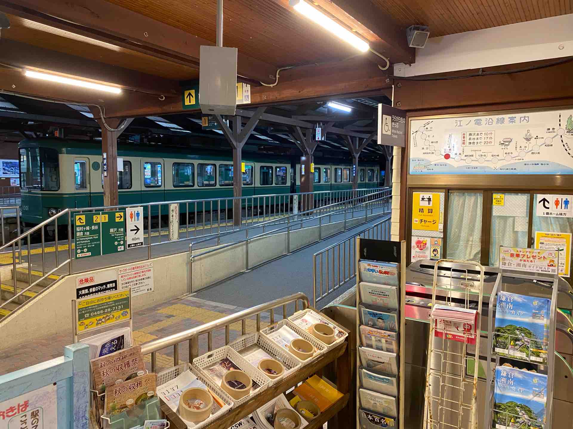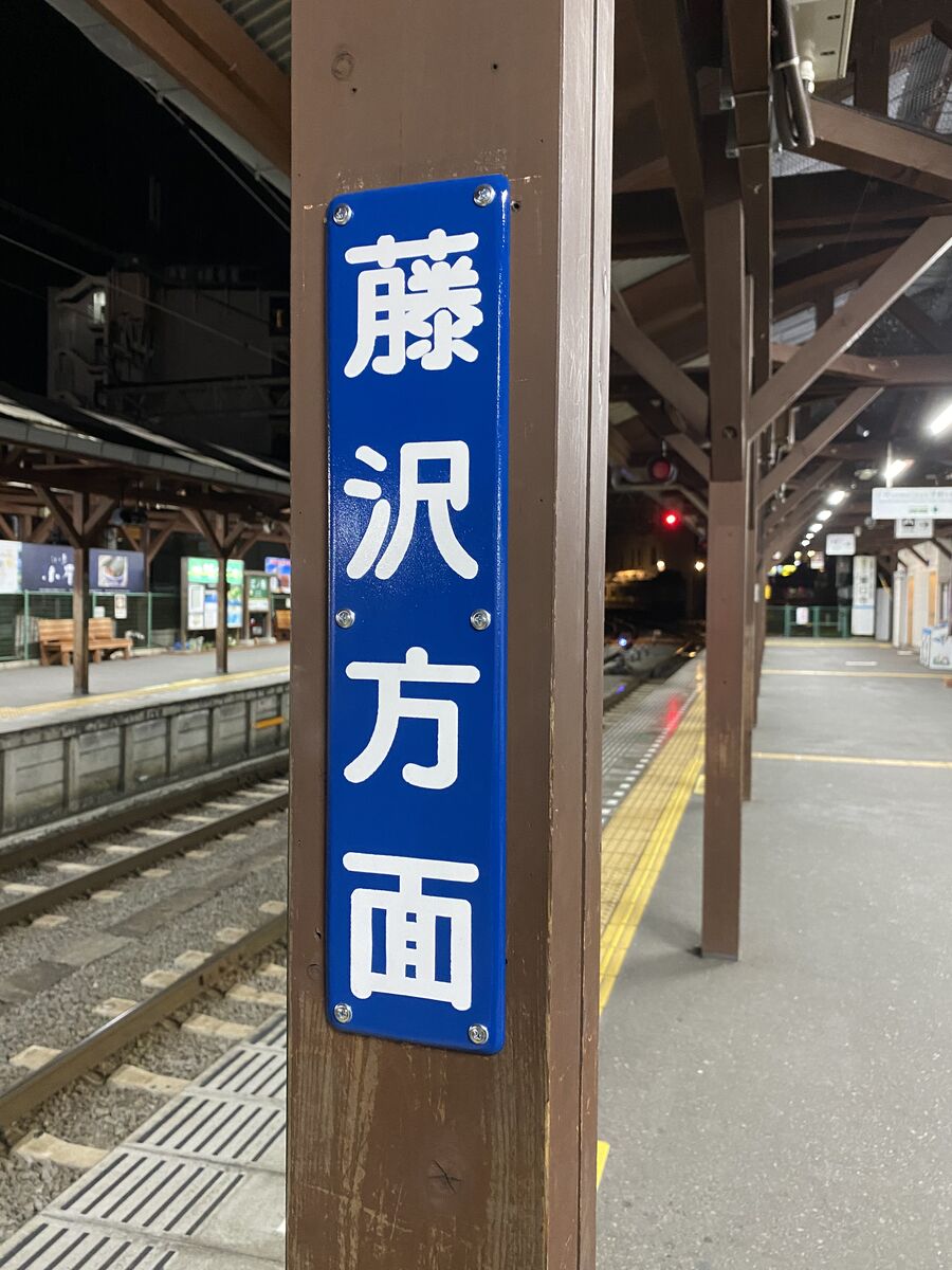 いま江ノ島駅の柱にホーロー風の方向看板がついたんですよね。