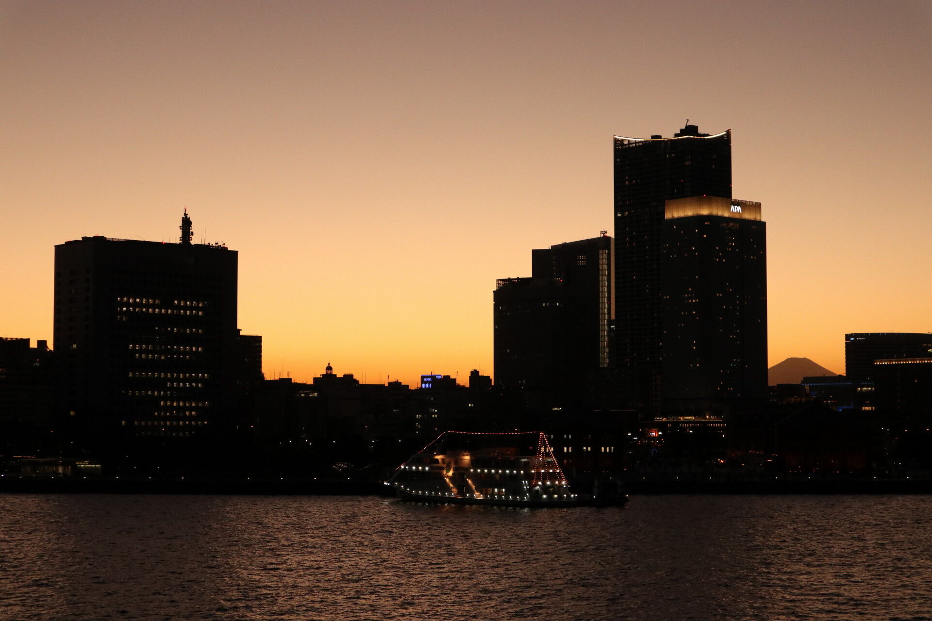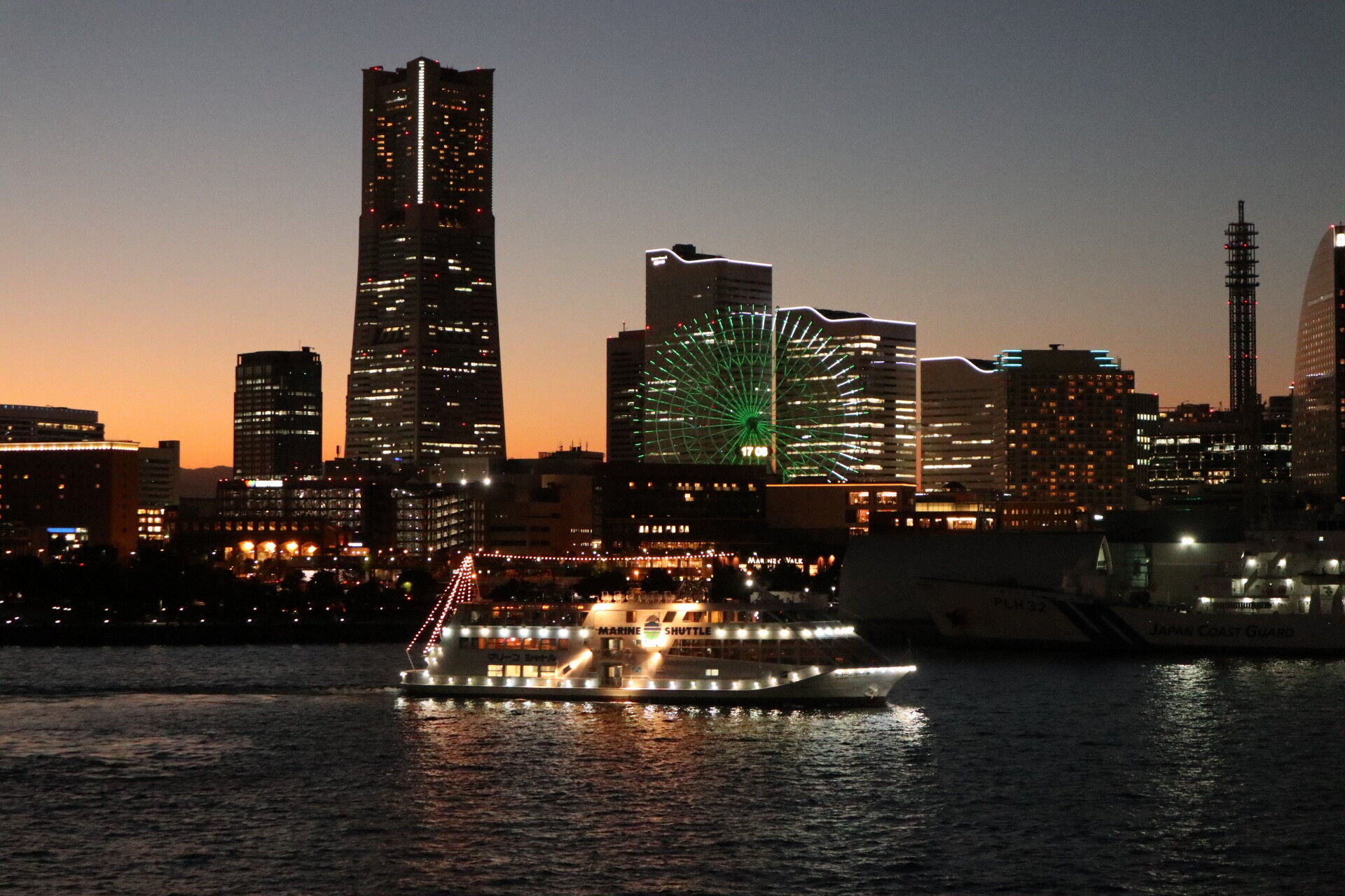 マリーンシャトルのライトアップもはっきり輝いてきましたね。