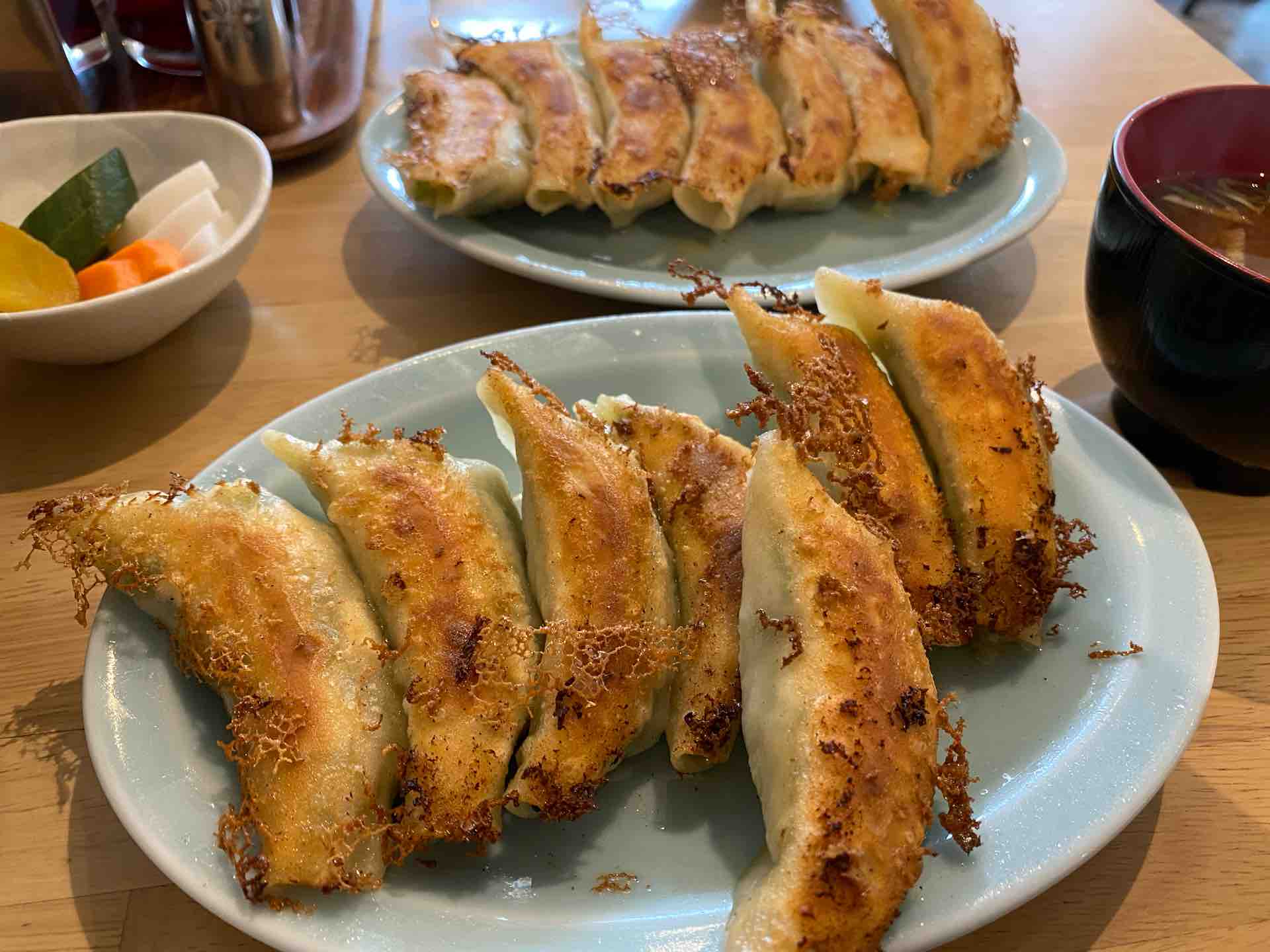 カリカリサクサクの箱根餃子と紫蘇餃子をどんっといただき
