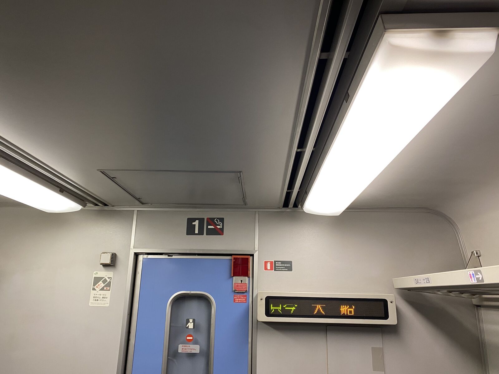 網棚の広告が画面だし、急にハイテクになっちゃってビックリ。