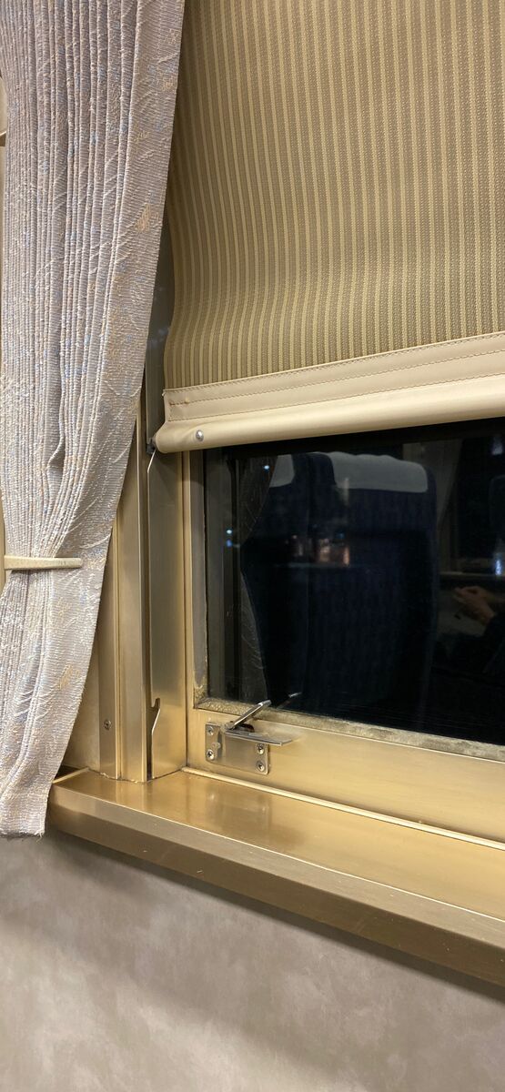 窓の開かない防弾ガラスを装備しているグリーン車です。