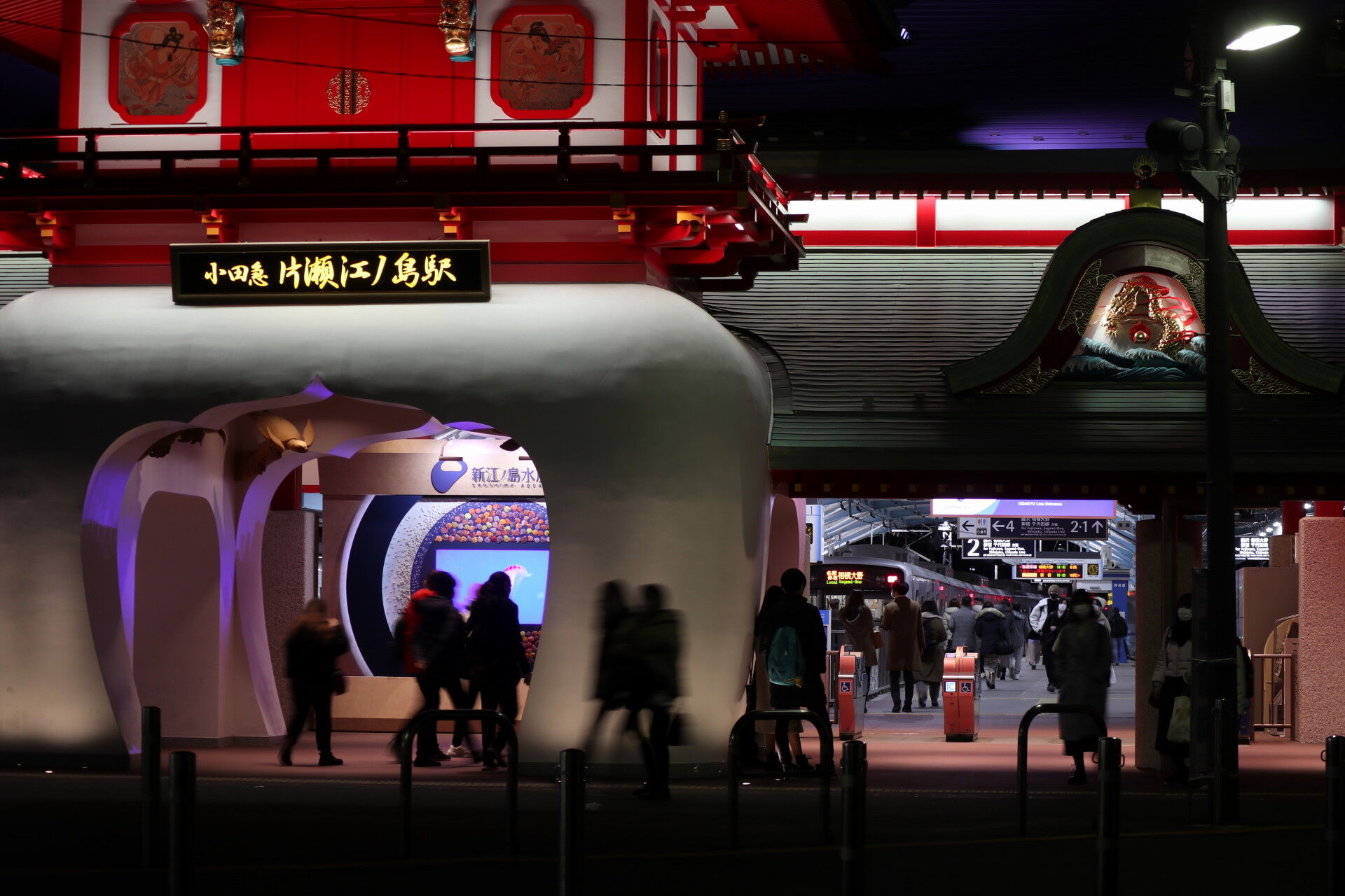 江ノ電の終電帰りに、ワイドドア1000を撮影しました。