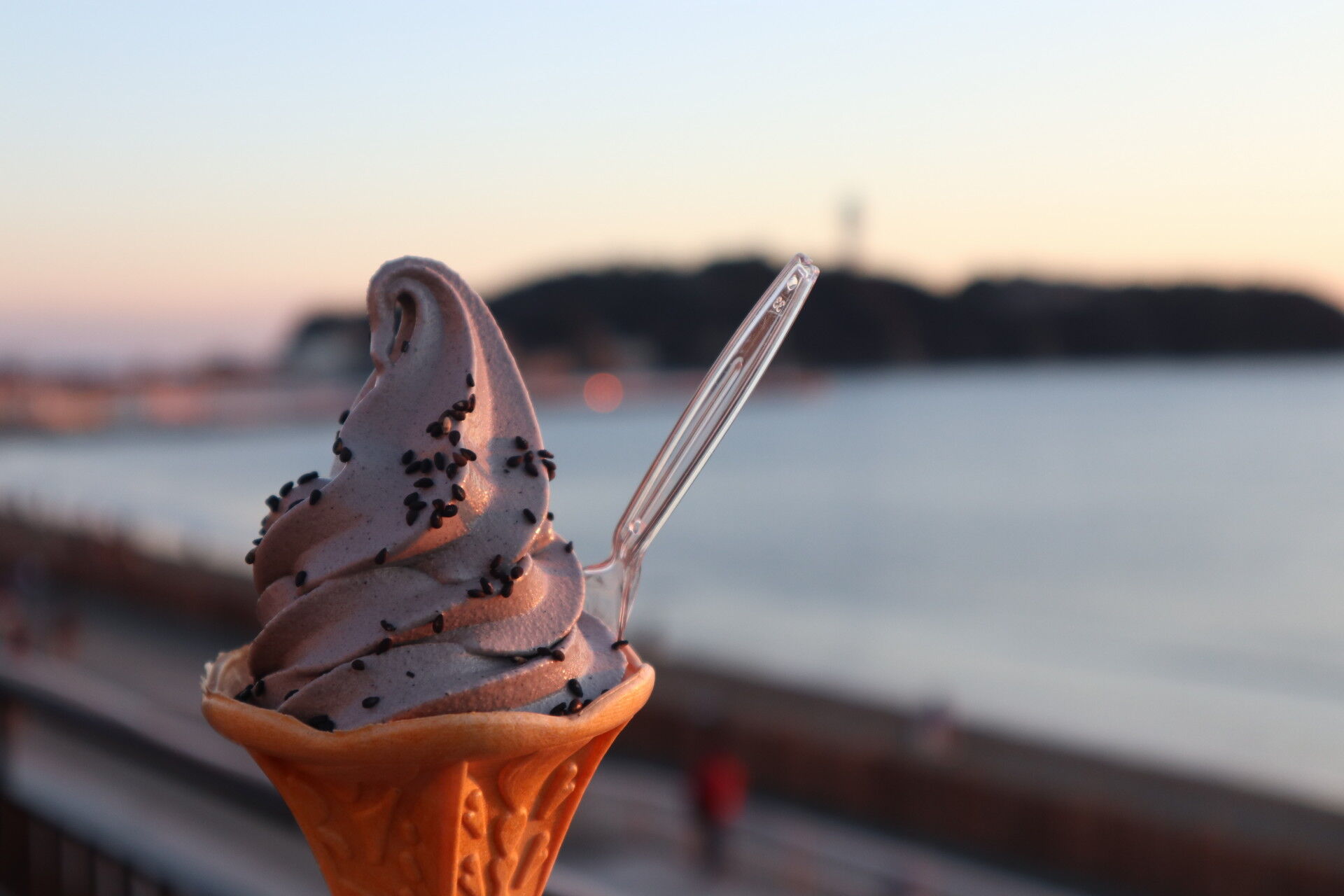 ゴマフアザラシをイメージしたあざらしソフトを食べながら