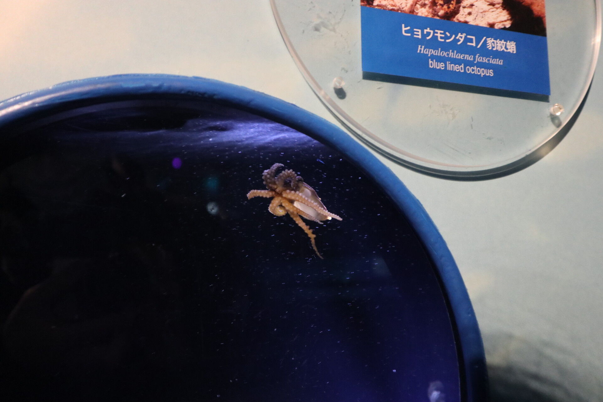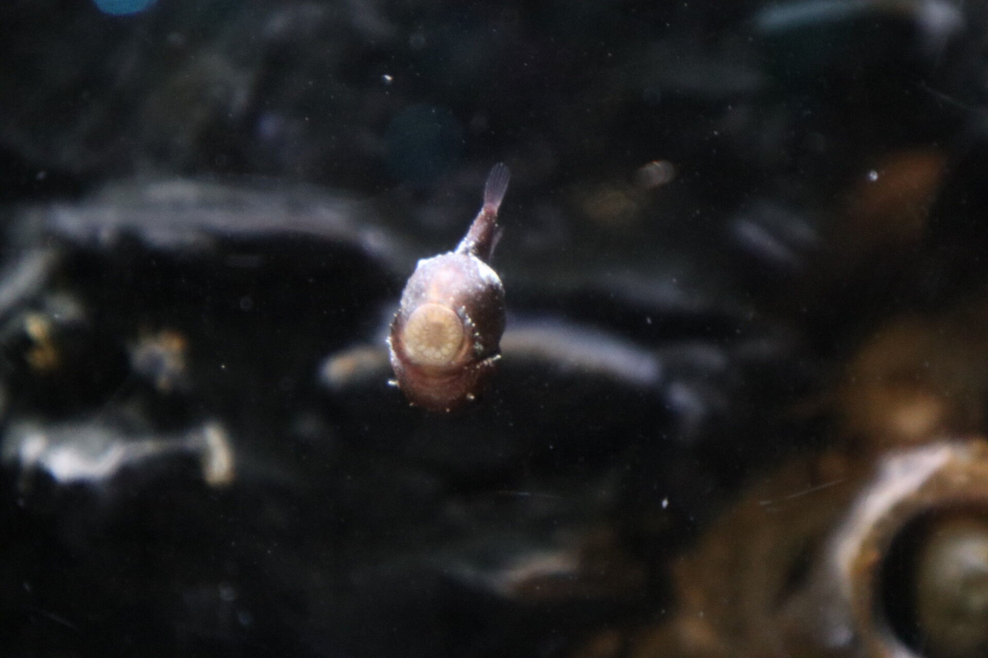 お目当てのダンゴウオはガラスに吸盤を当てて見えず。残念。