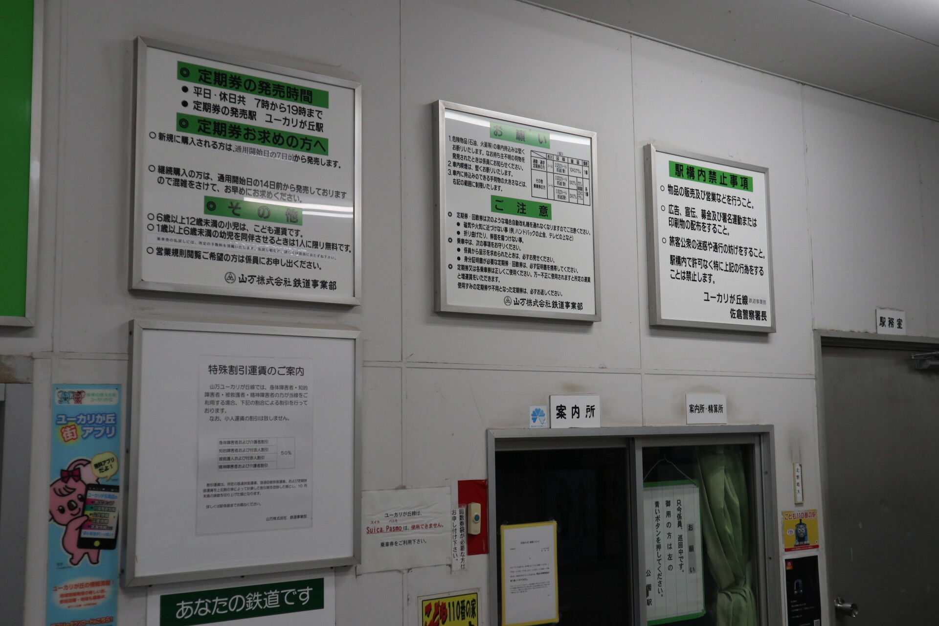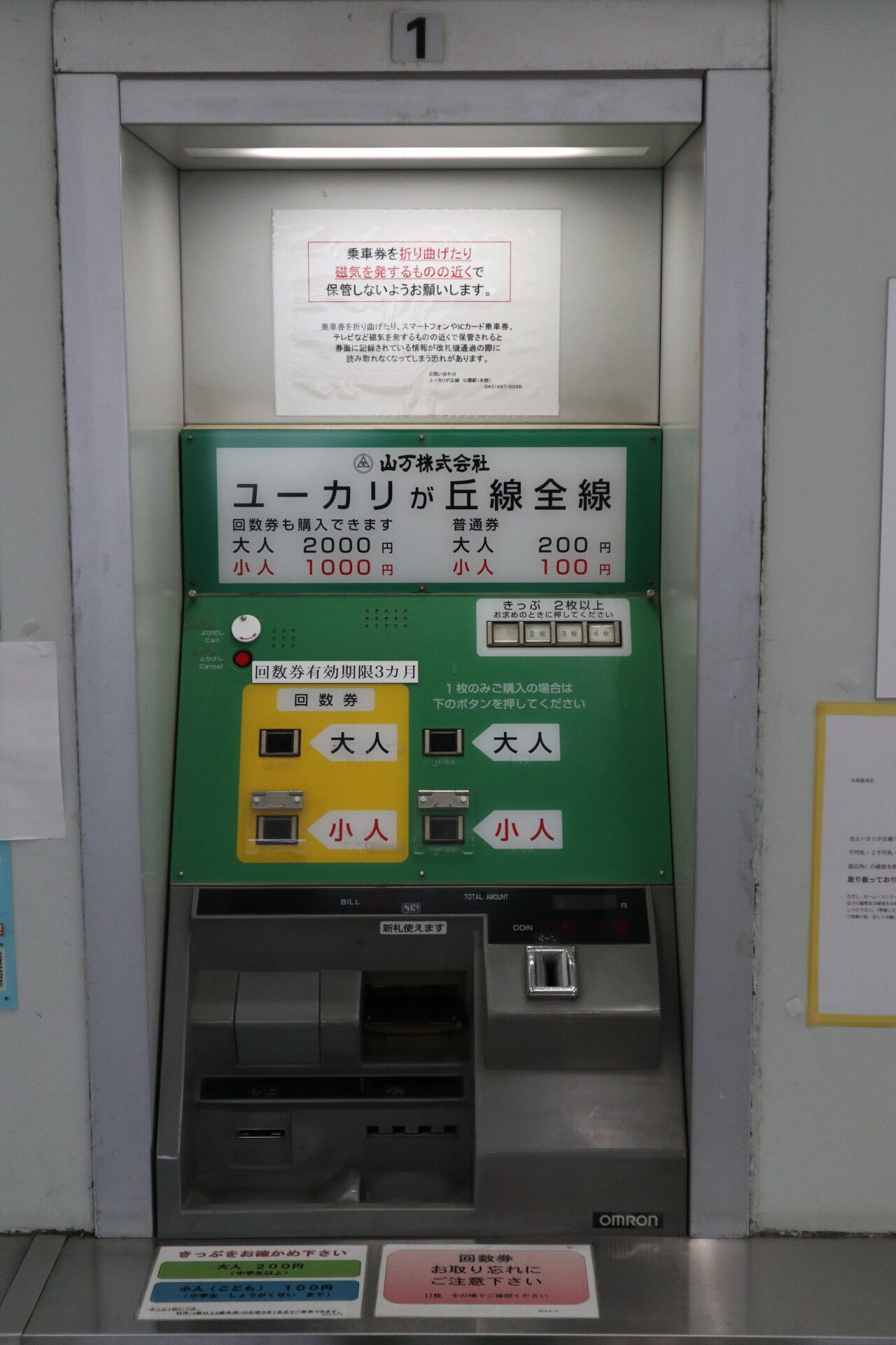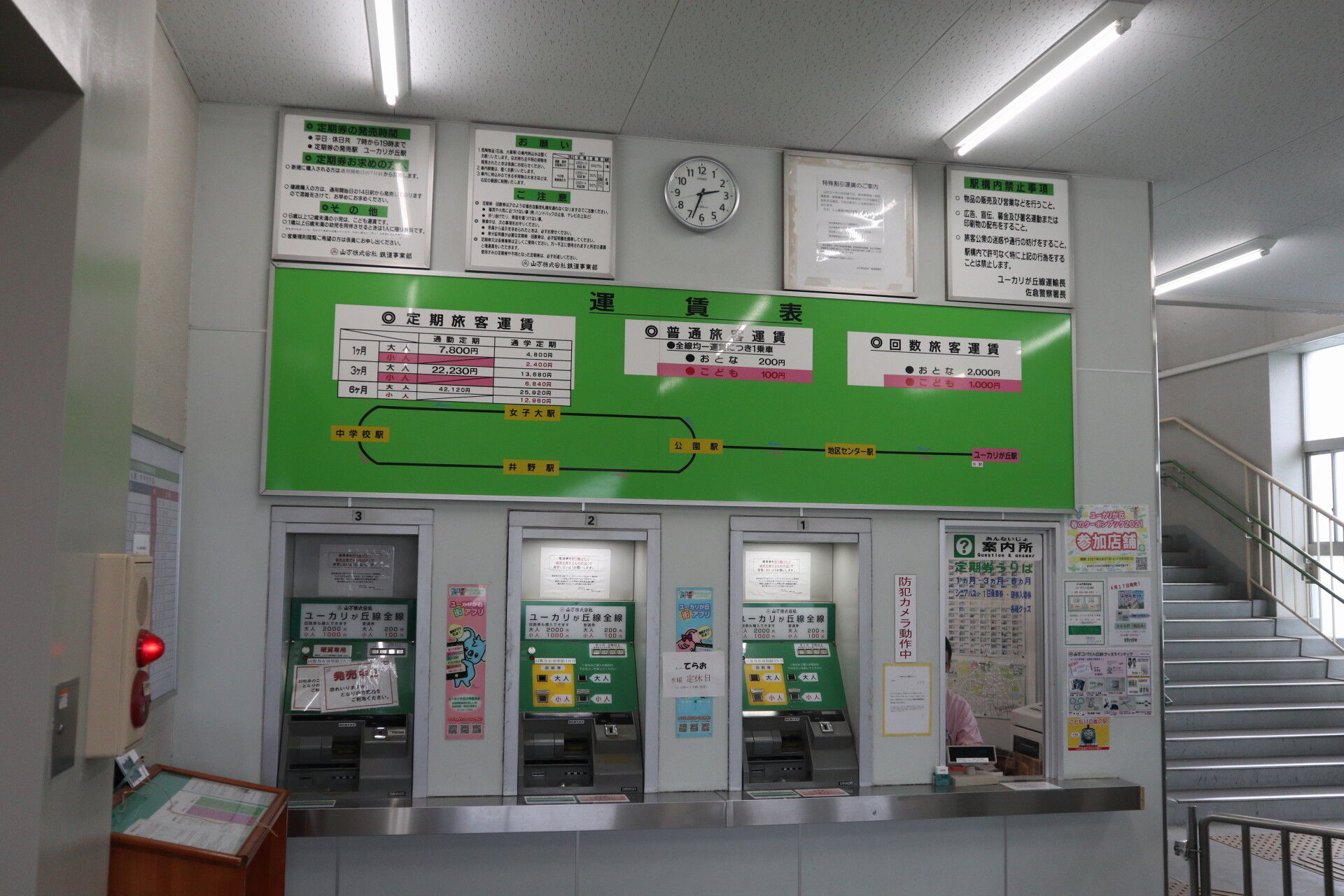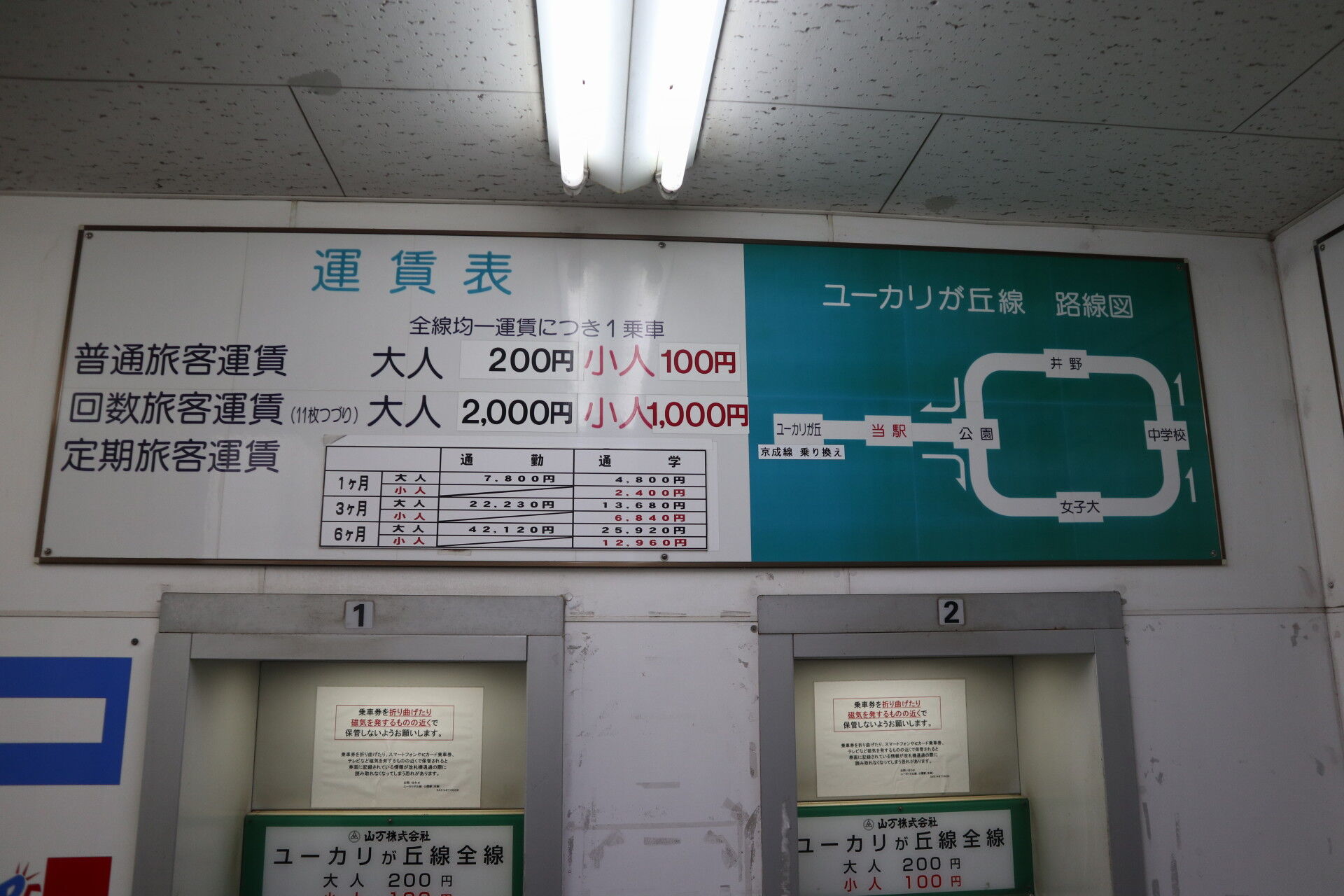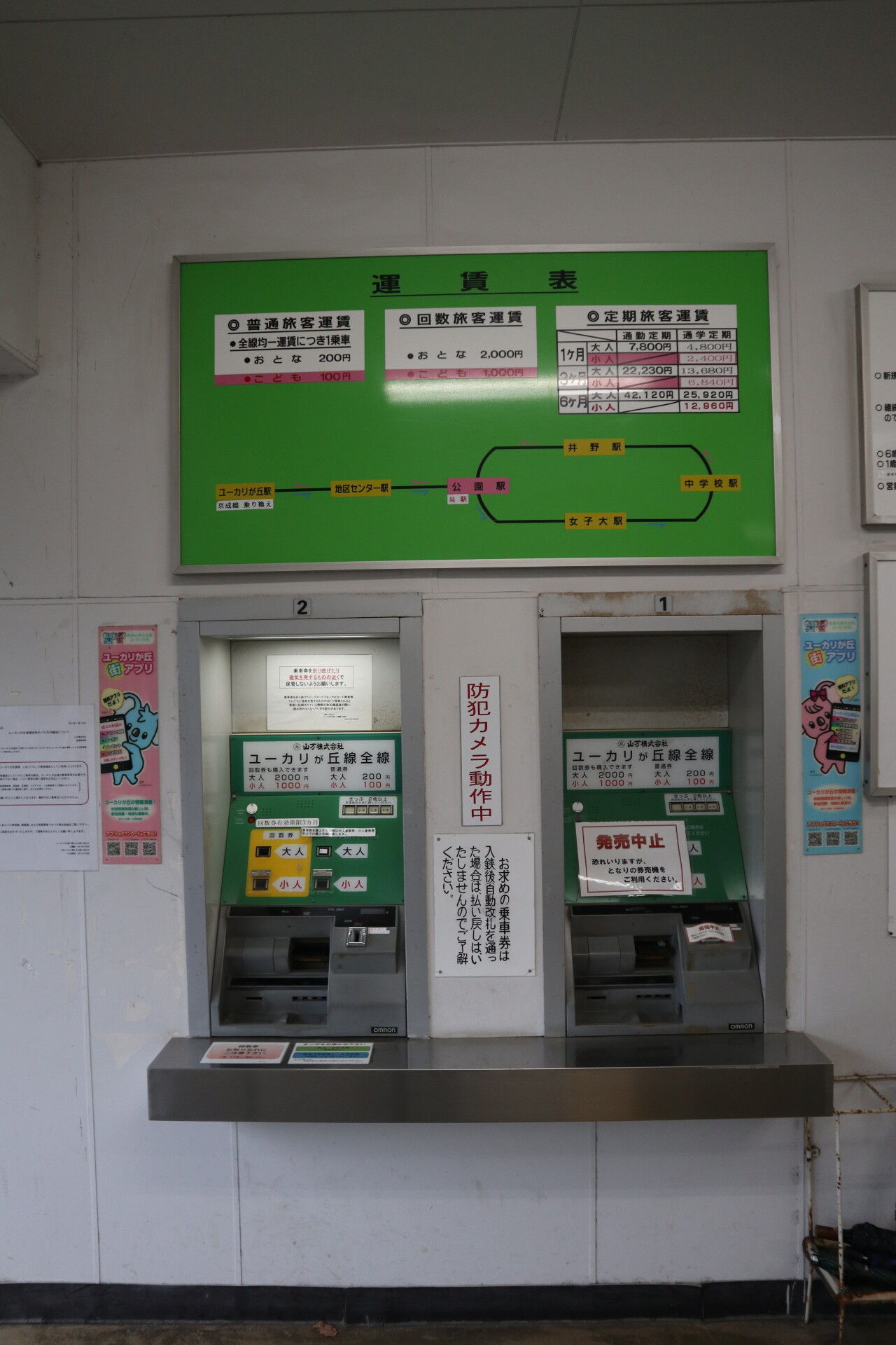 ここ公園駅とユーカリが丘駅が有人駅で、回数券の販売も行っています。