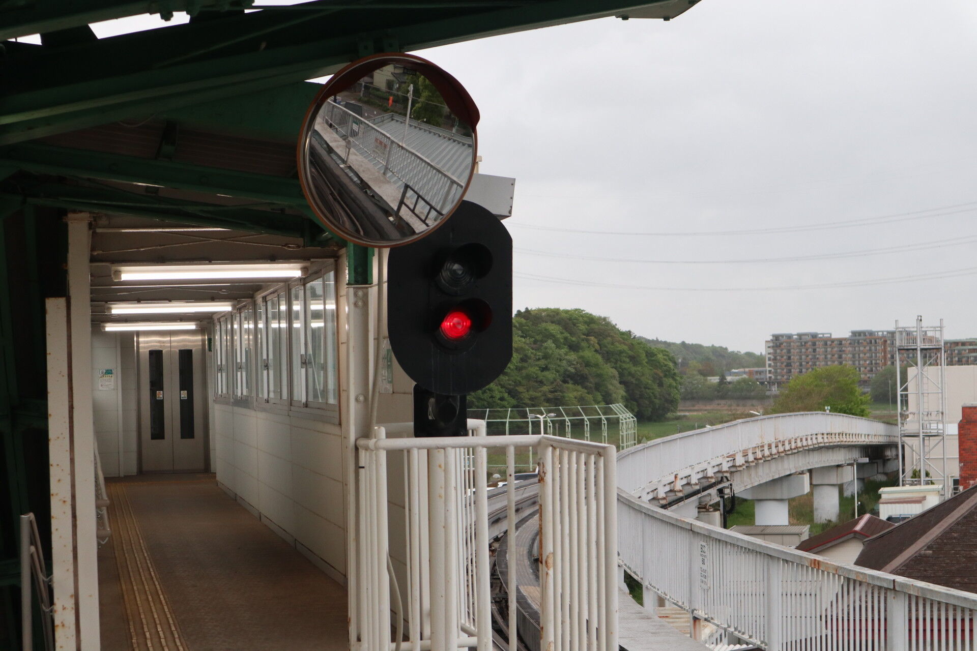 ホーム延長部のエレベーター通路を眺めます。