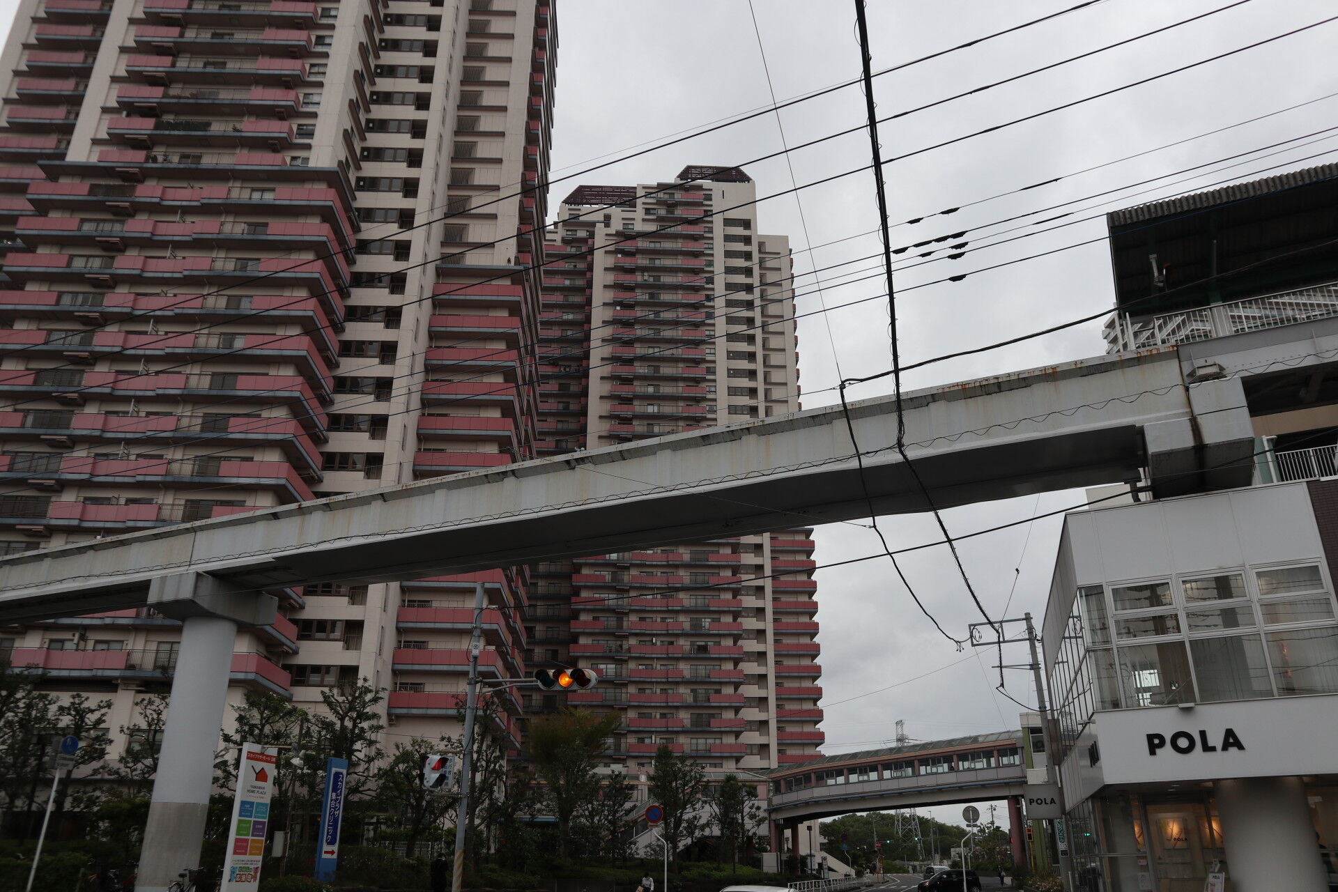なんと、ビルが橋脚を取り込むスタイルです!