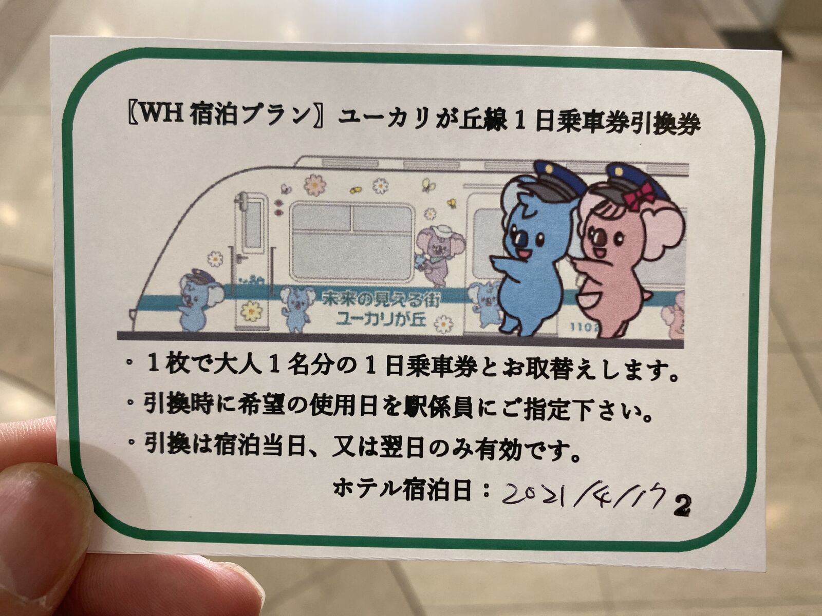 ホテルでユーカリが丘線の一日乗車券の引換券がもらえます!